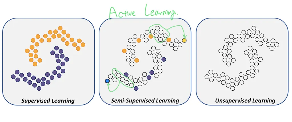In active learning, the model has the intrinsic ability to query for one of the labels from .