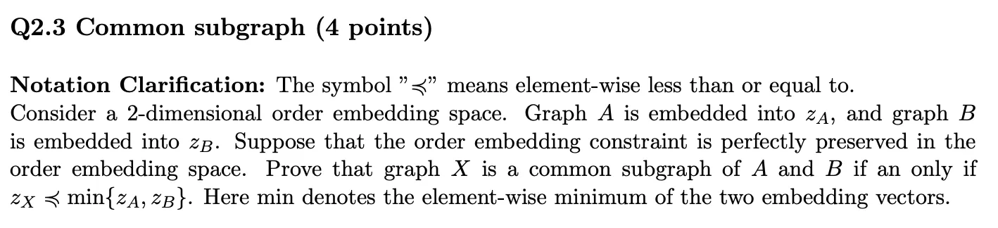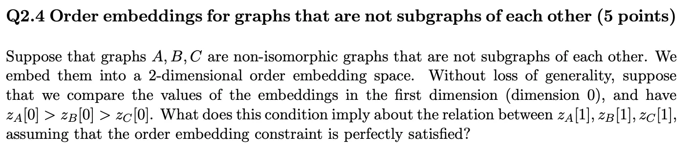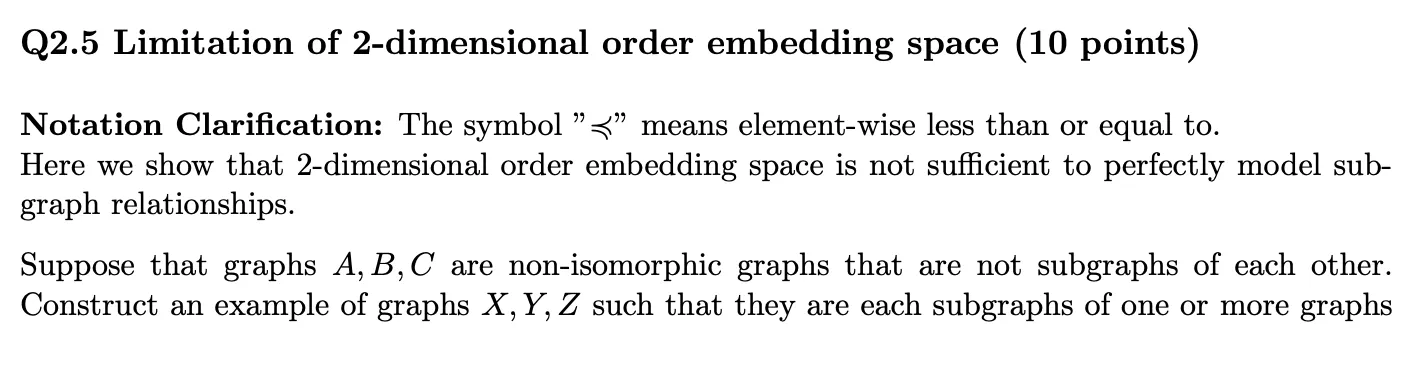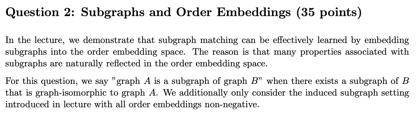A가 B의 subgraph이면, order embedding space 상에서 A의 모든 embedding dimension 값들이 B의 모든 embedding dimension의 값보다 작도록 학습함