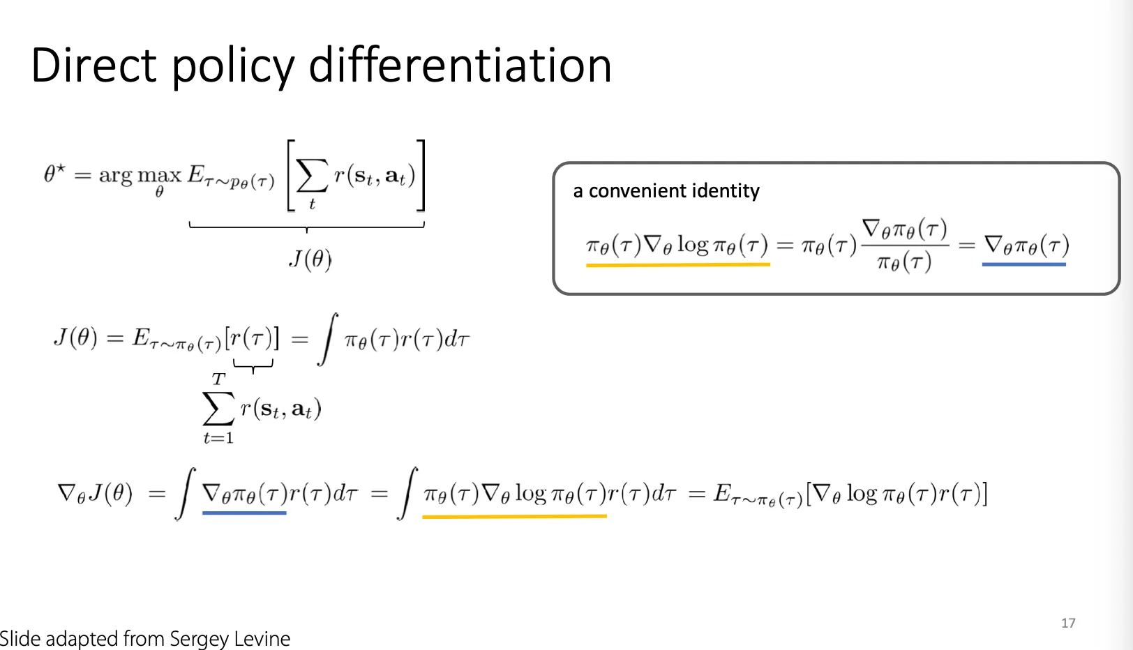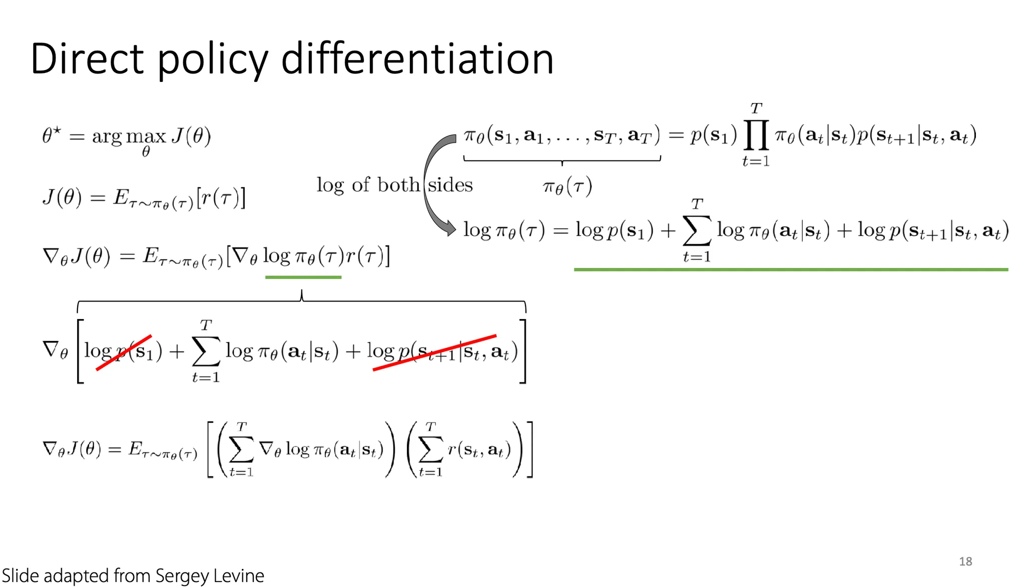 Objective(policy)의 gradient를 계산하기 위해 전개를 해보면,