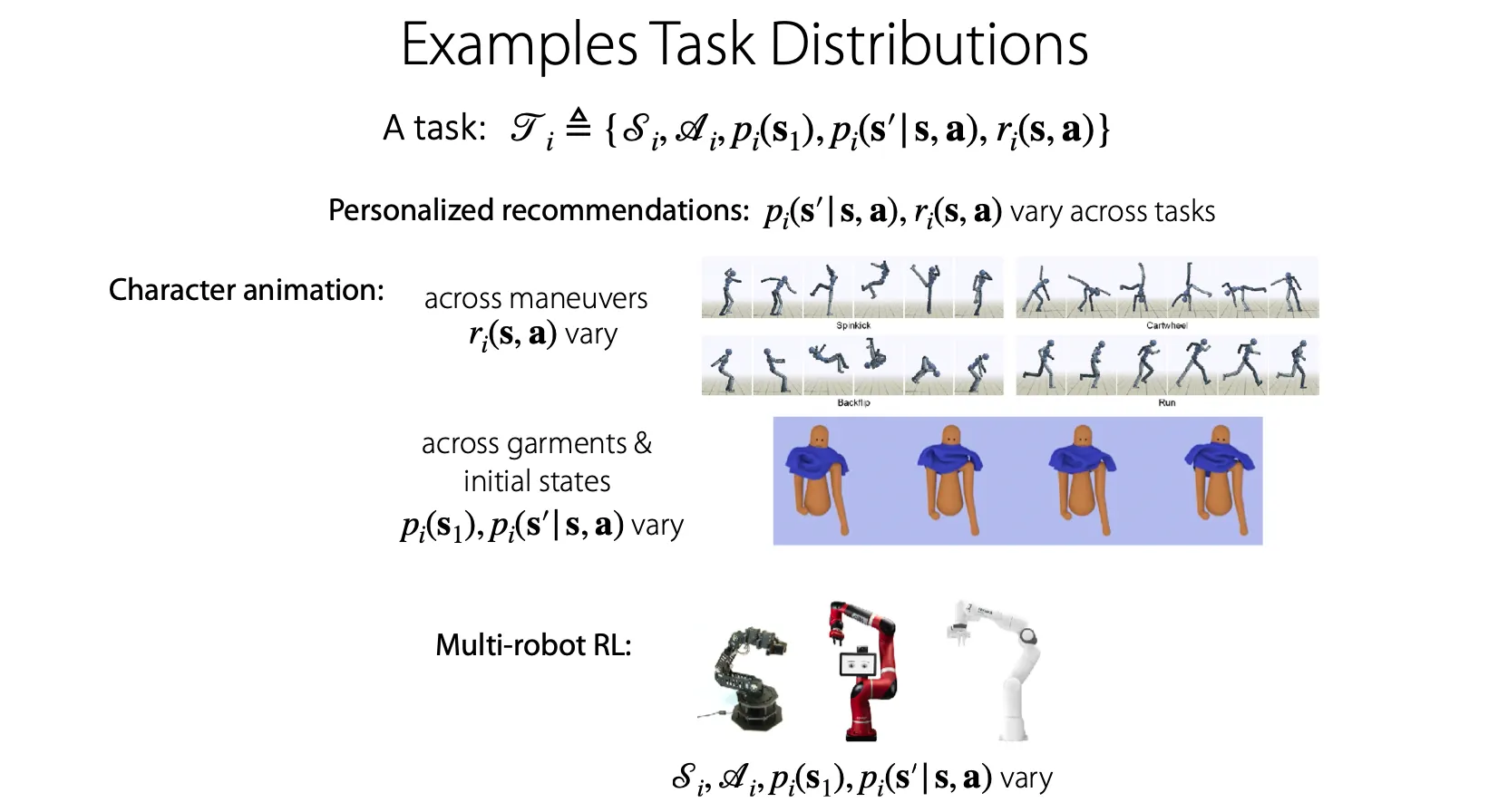 Character animation 문제에서는 manuever에 따라 reward function이 다른 task들, reward는 같은데 initial state나 dynamics가 다른 task들, state space와 action space까지 다른 task 등 다양한 상황이 있을 수 있다.