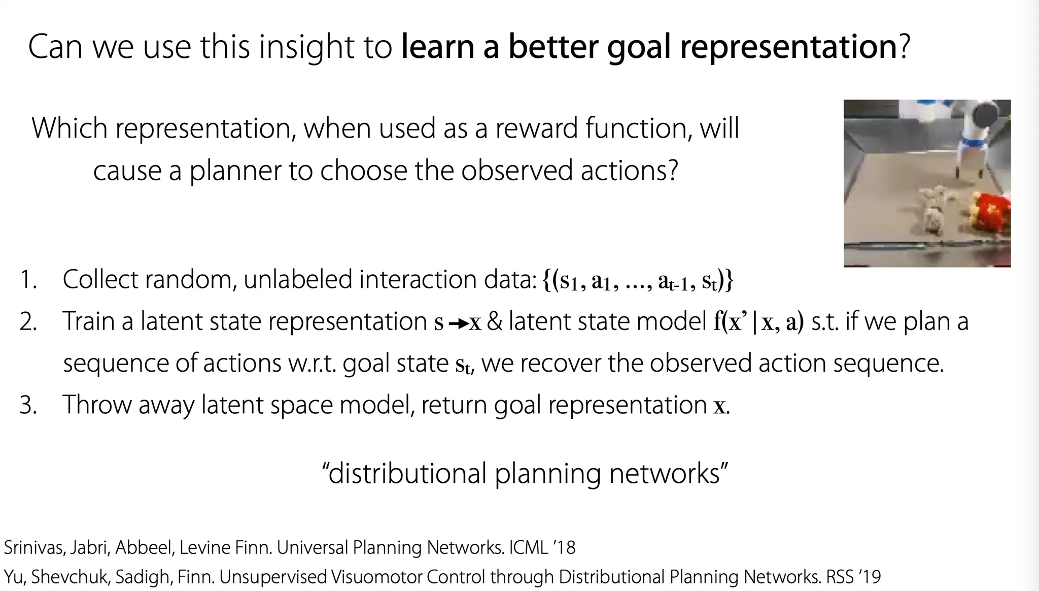 Reward function으로 쓸만한 goal representation을 학습하도록 하는 방법은 없을까?