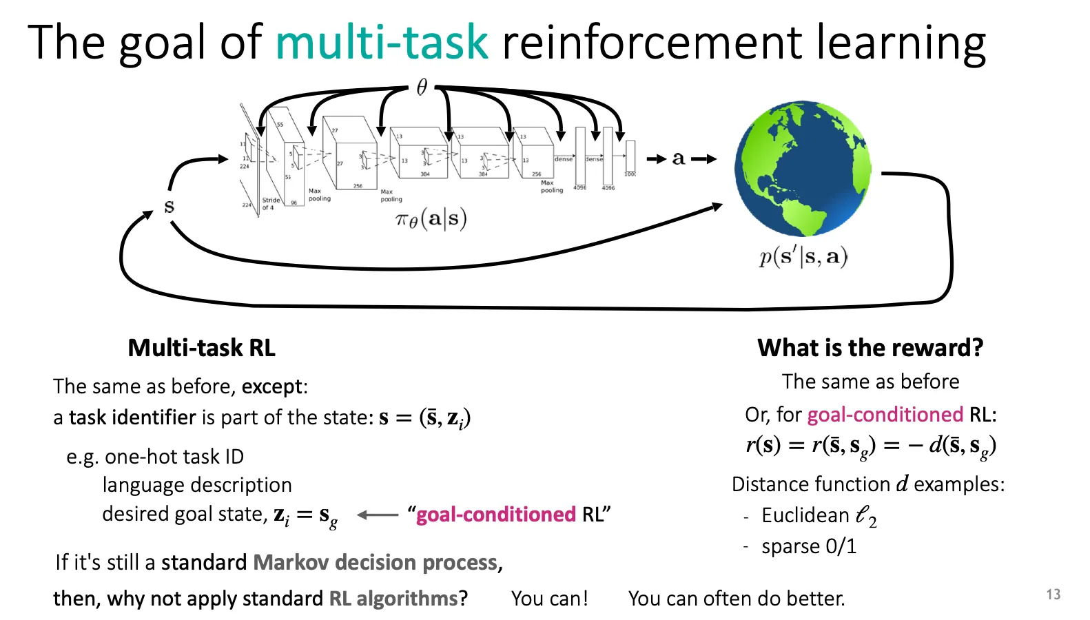 여러 RL task들을 오른쪽과 같이 union 하면 multi-task RL로 생각할 수 있다.