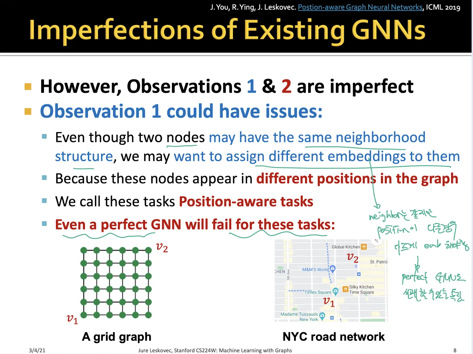 같은 neighbor를 가지지만 position에 따라서 다르게 embedding해야 되는 경우 문제가 생김