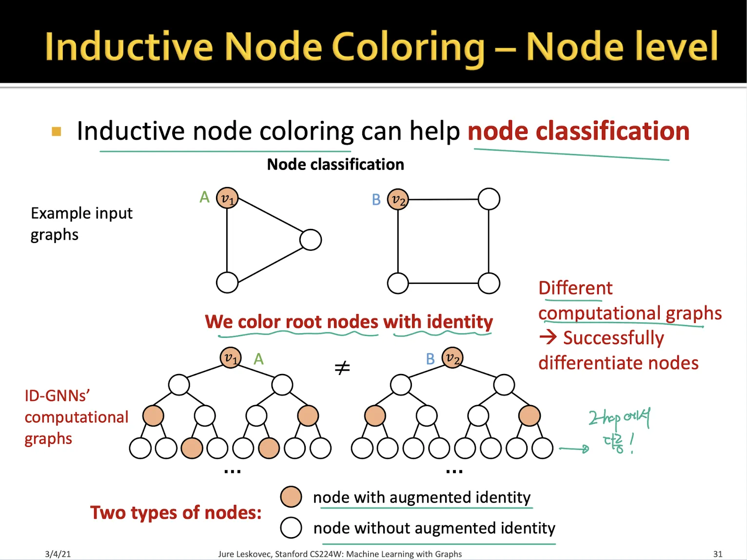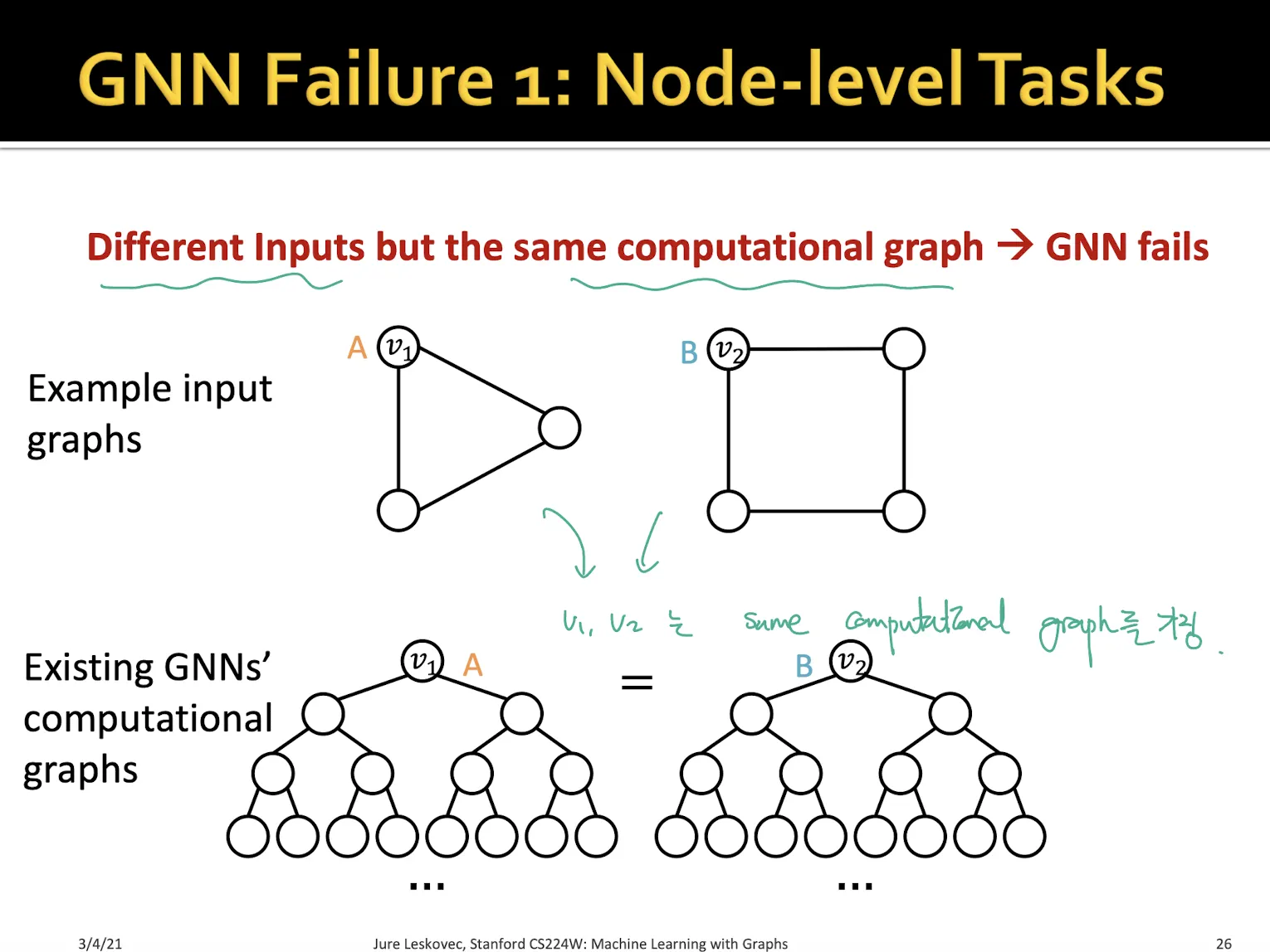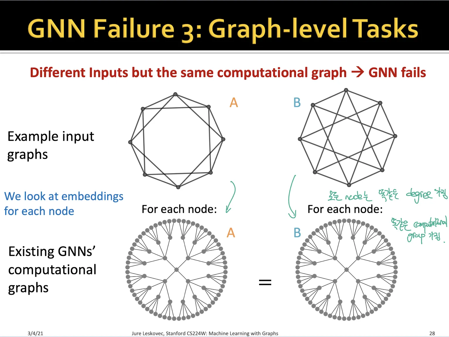 다른 node이지만 같은 computational graph를 가져서 같은 embedding으로 계산되는 문제가 있다.