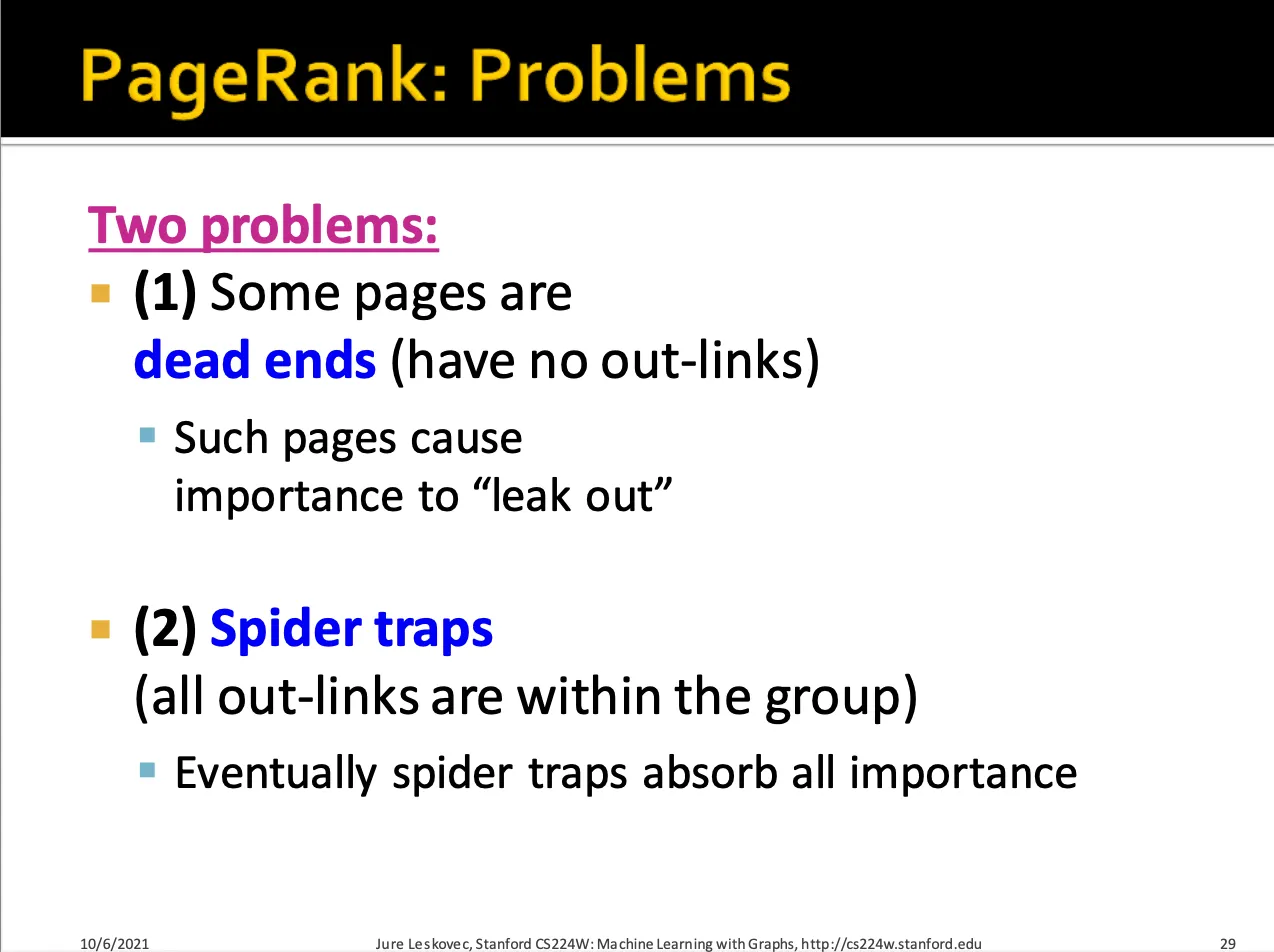 Dead ends와 Spider traps 라는 두가지 문제점이 있습니다.