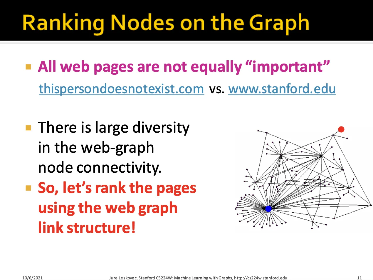 모든 웹페이지가 중요한 페이지는 아니기 때문에 페이지끼리 순위를 매겨야 합니다.