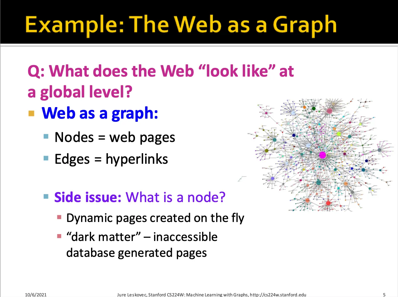 웹은 그래프라 생각할 수 있습니다. 웹페이지는 node, 하이퍼링크는 edges라고 둘 수 있습니다.