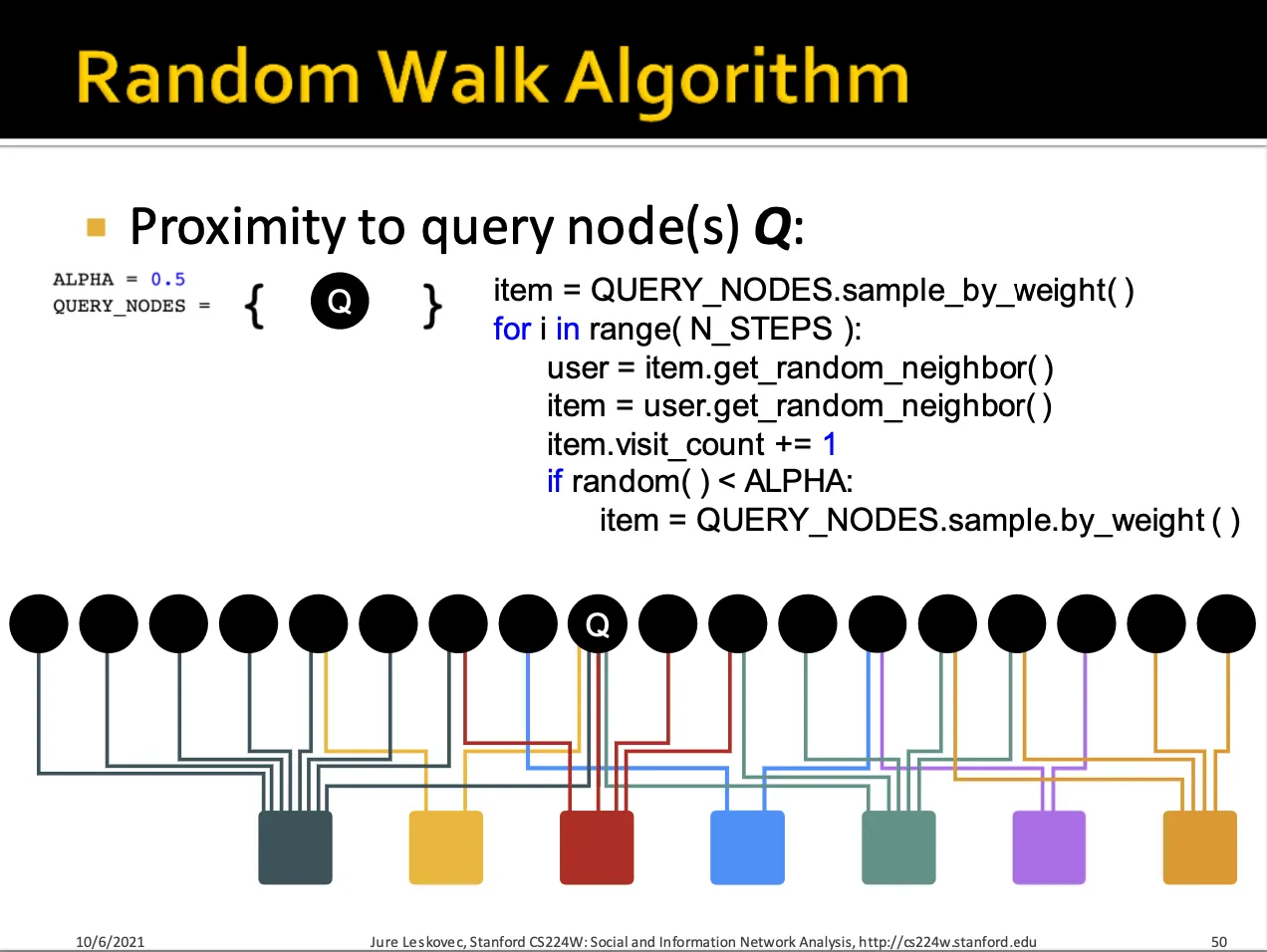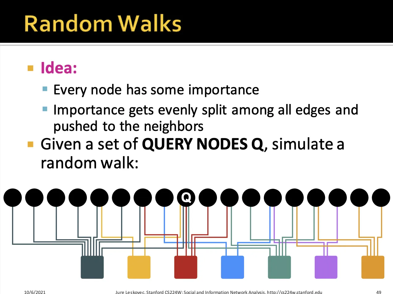 어떤 Query node Q가 있을 때, 이 node에서 random walk를 시작하게 됩니다.