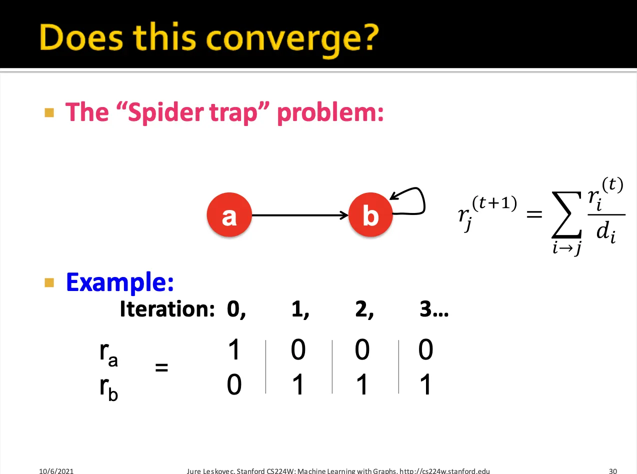 하지만, 이렇게 반복해서 계산했을 때 수렴한다는 보장이 없으며, 수렴했을 때 rank 값들이 원하는 값이 아닐 수 있습니다.