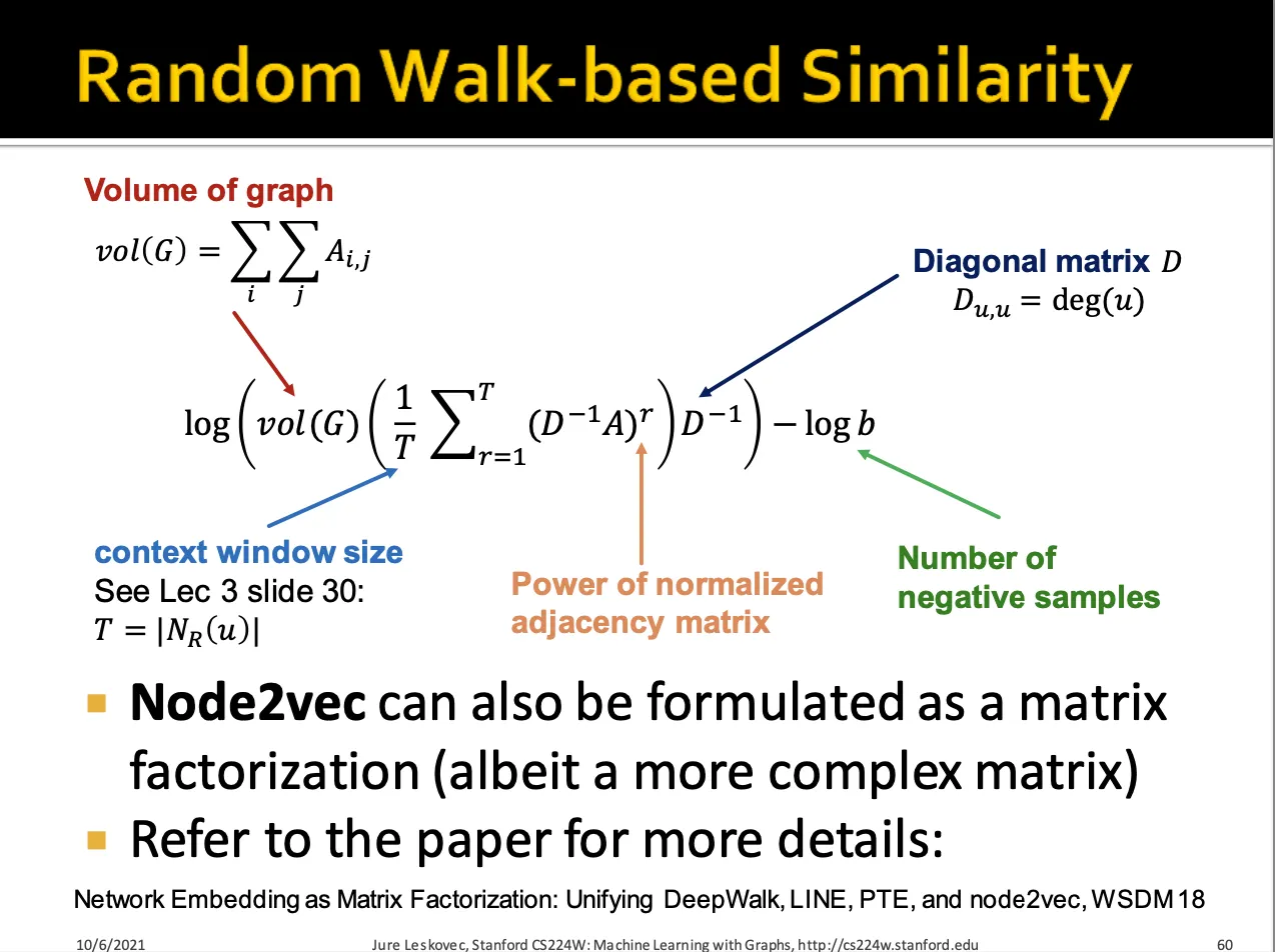 DeepWalk과 Node2Vec 알고리즘을 통해서도 node similarity를 계산할 수 있습니다.