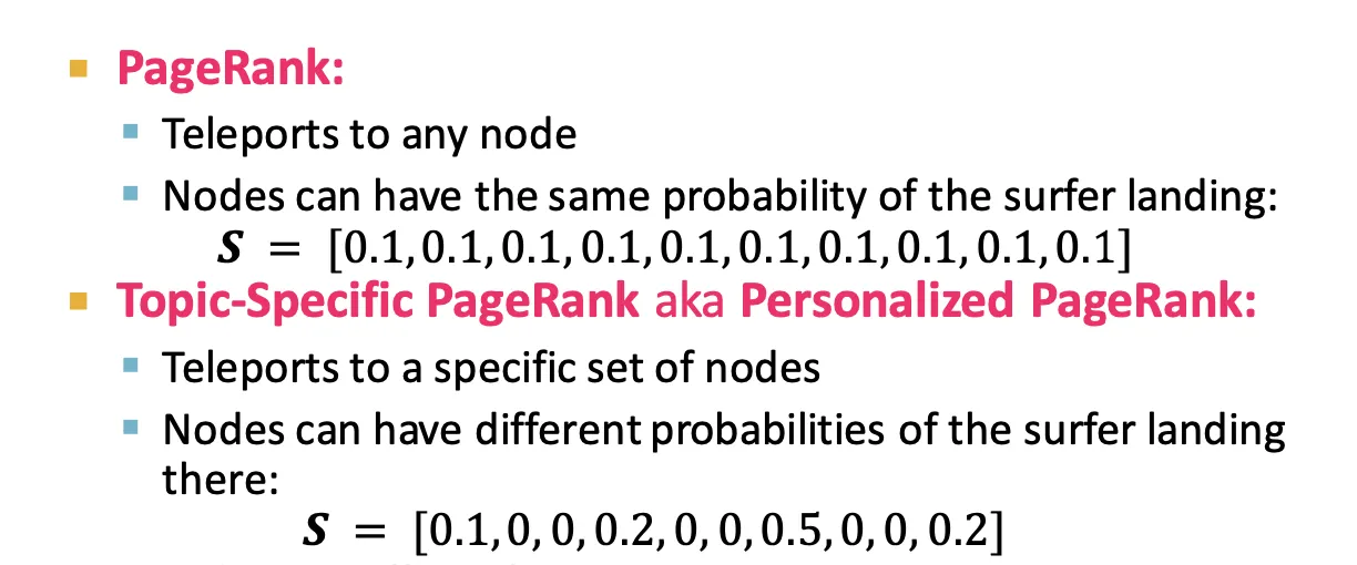 만약 똑같은 확률로 random jump를 하는 것이 아니라 bias 된 확률로 random jump를 한다면, 이를 Personalized PageRank라 합니다.