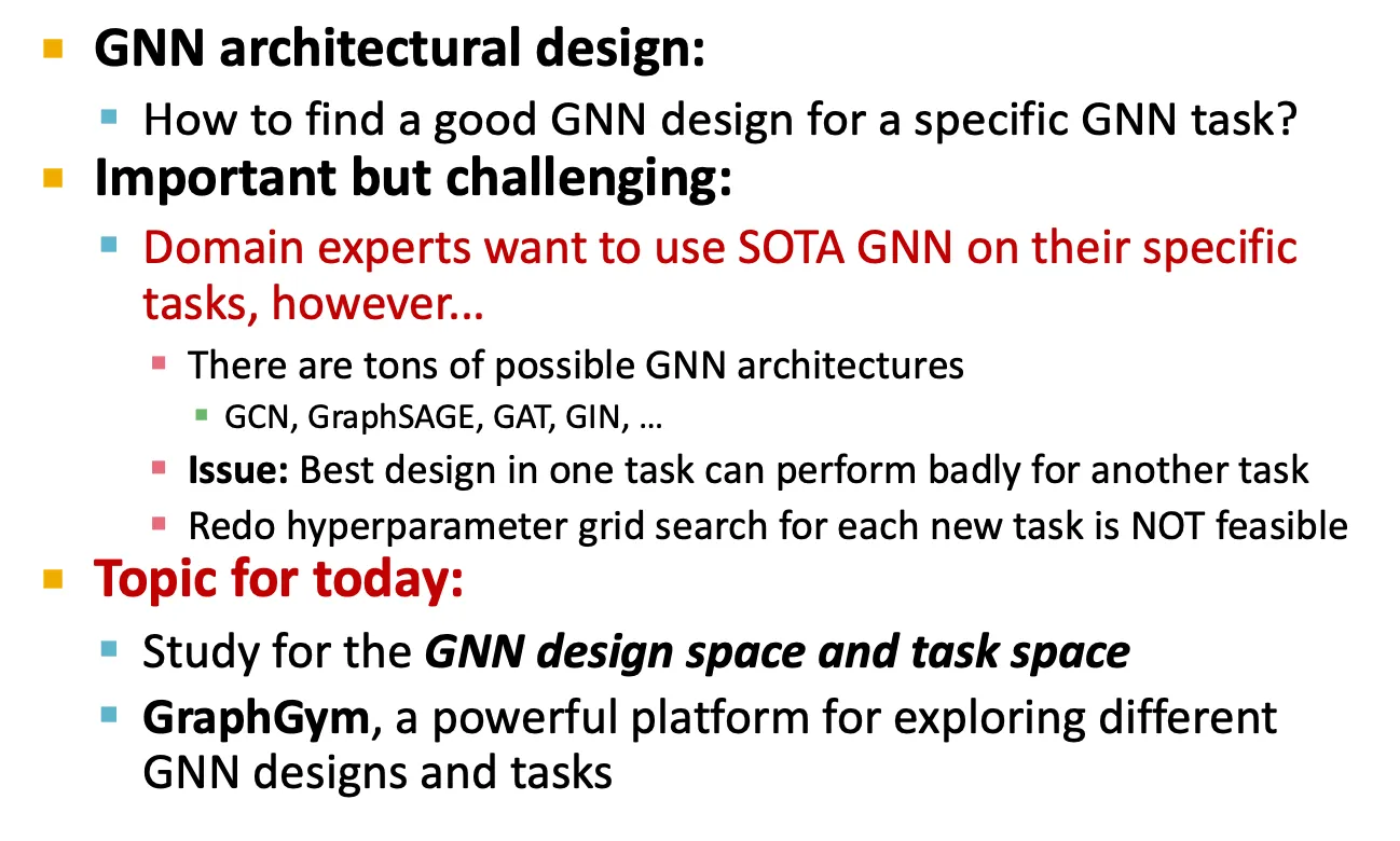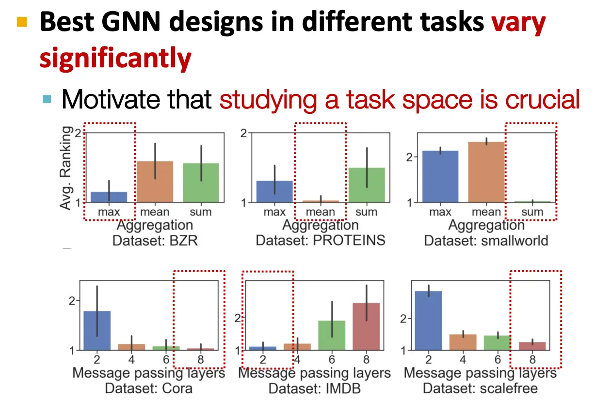 Task마다 best GNN은 좀 다를 수 있고, 이를 결정하기 위해 GNN task space를 잘 만드는 것이 중요하다.