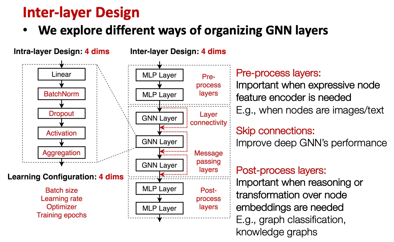 Inter-layer: Pre-processing layer, skip connection, post-processing layer 등