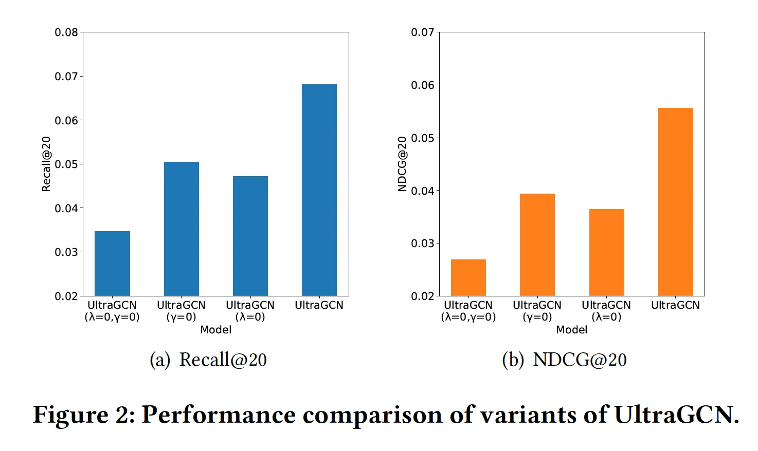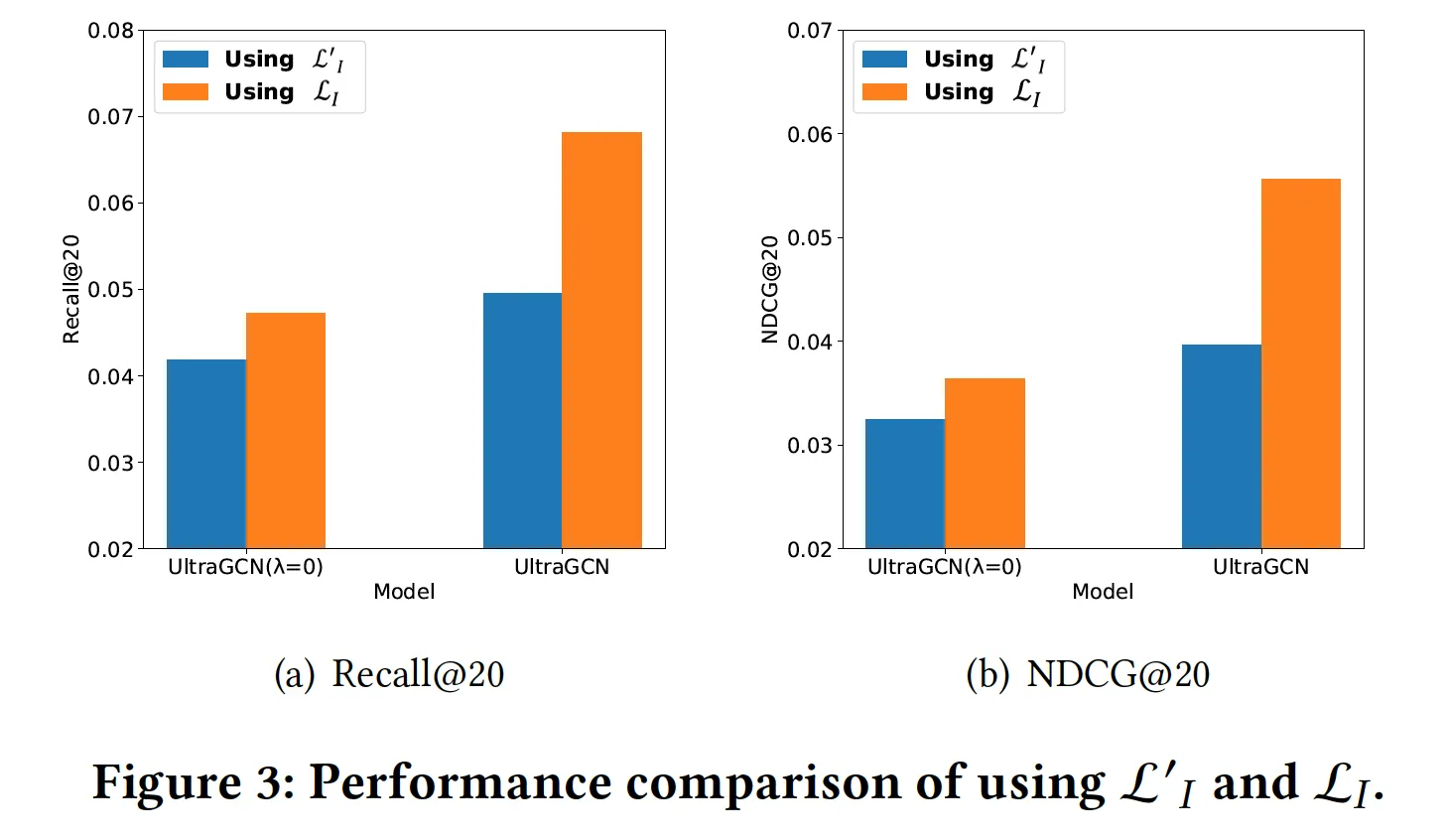 Meanwhile, UltraGCN allows for more appropriate edge weight assignments and flexible adjustment of the relative importances among different types of relationships.