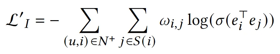 item-item connection의 sparsity를 보장하고 학습 효율을 늘리기 위해, item-item graph에서는 각 아이템 i에 대해 기준 상위 K개의 유사 아이템만 선택하여 loss에 더함(N(i) → S(i), |S(i)|=K)(학습에서는 K=10)