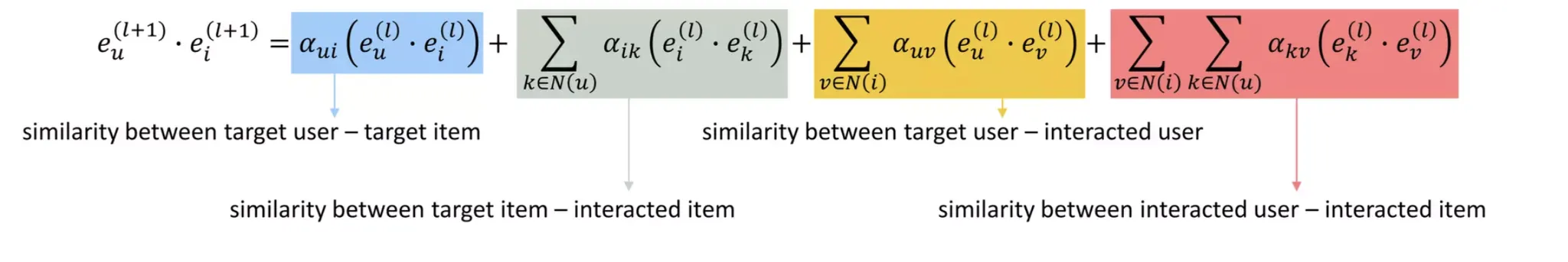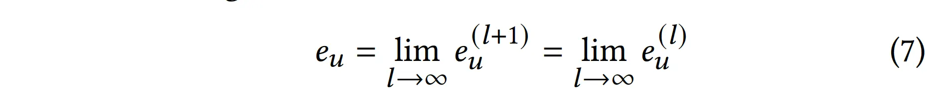 infinite layer을 통과하여 message passing이 완벽하게 이루어졌다면, 유저 임베딩의 최종 수렴 상태는 다음과 같다.