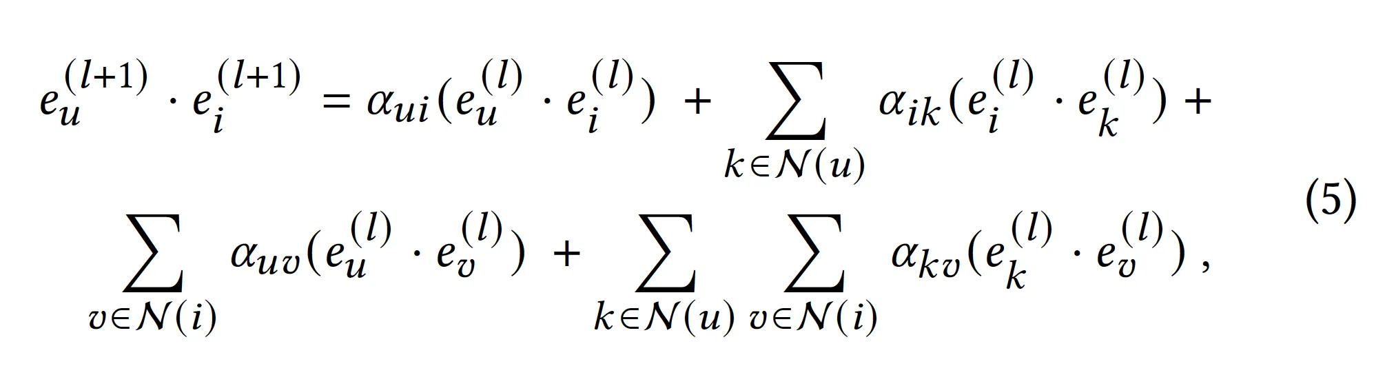 최종적으로는 와 의 dot product로 user-item edge를 예측하게 될 것이므로, 를 전개해 보면