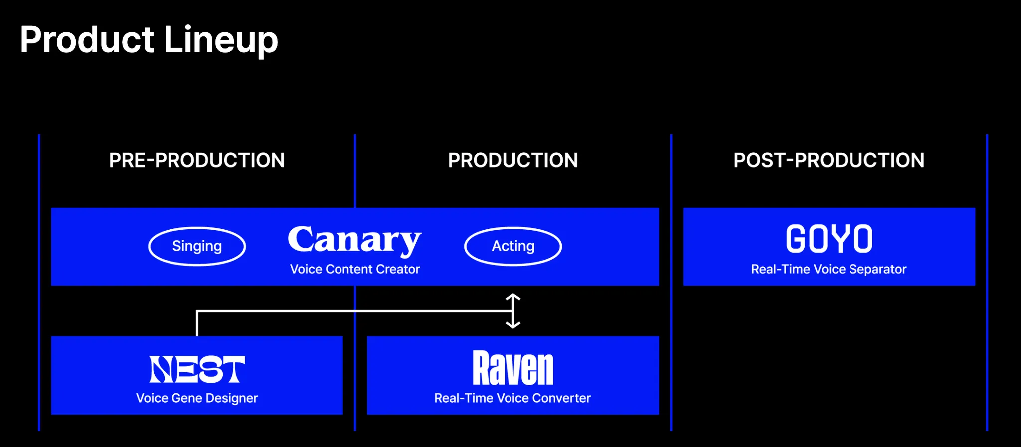 영화 더빙 (우리나라는 더빙을 많이 안 보지만, 외국은 많이 본다고 함) 할 때 느낌을 살리기 위해 원작 배우의 목소리는 유지하되, 언어만 다르게 얘기하도록 하는 B2B 더빙 서비스