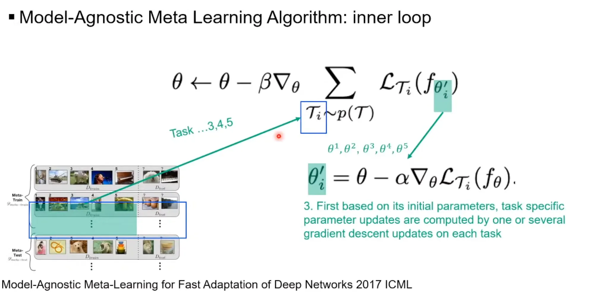 For each task, divide each samples into (task-specific samples for studying, also called as support set), (task-specific samples for checking, also called as query set)