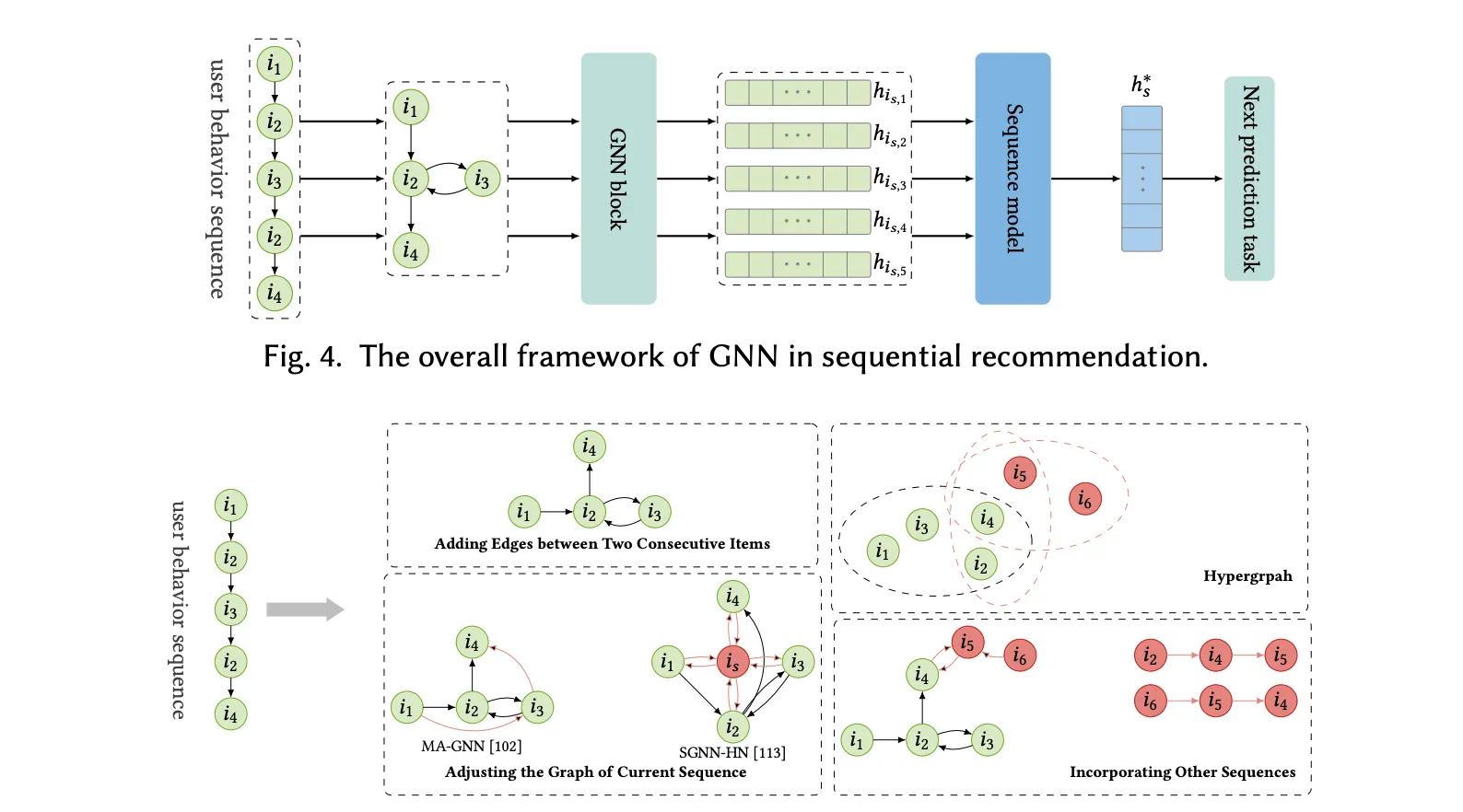 → 따라서 GNN으로 user sequential preference를 더 반영하기 위해 다음과 같이 두가지 방향으로 연구됐다.