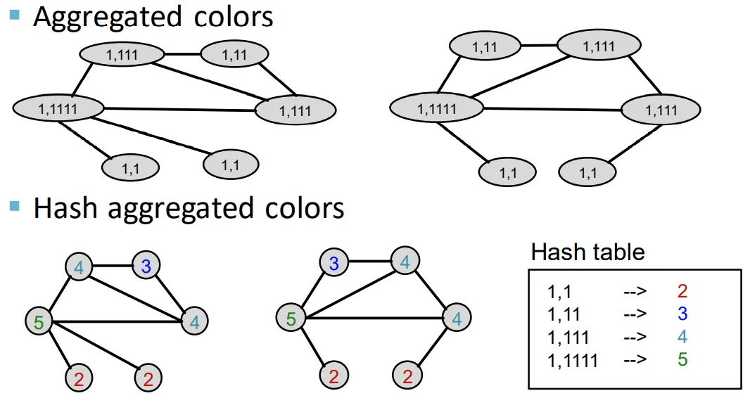 Node의 hash 함수의 결과가 새로운 color가 됨