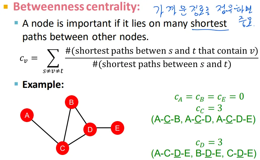 Node 사이의 최단 경로에 내가 포함되면 betweenness centrality 증가