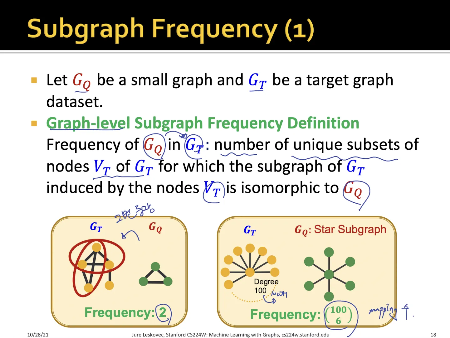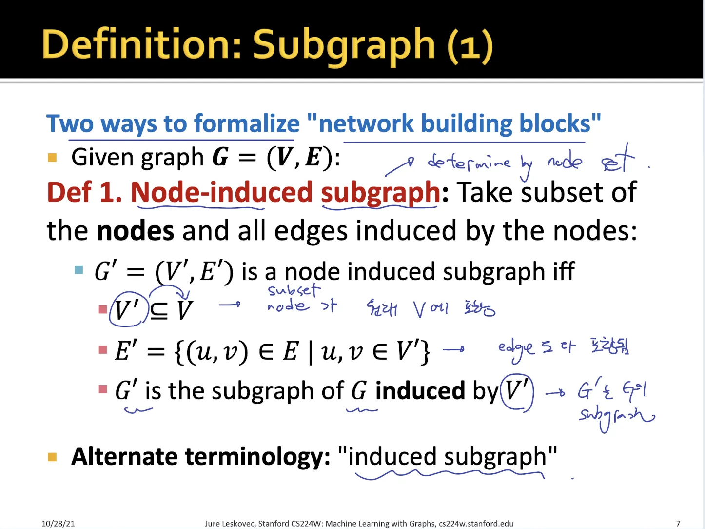 Node-induced subgraph : subgraph node가 target graph node에 포함되고, edge들도 다 포함되는 경우