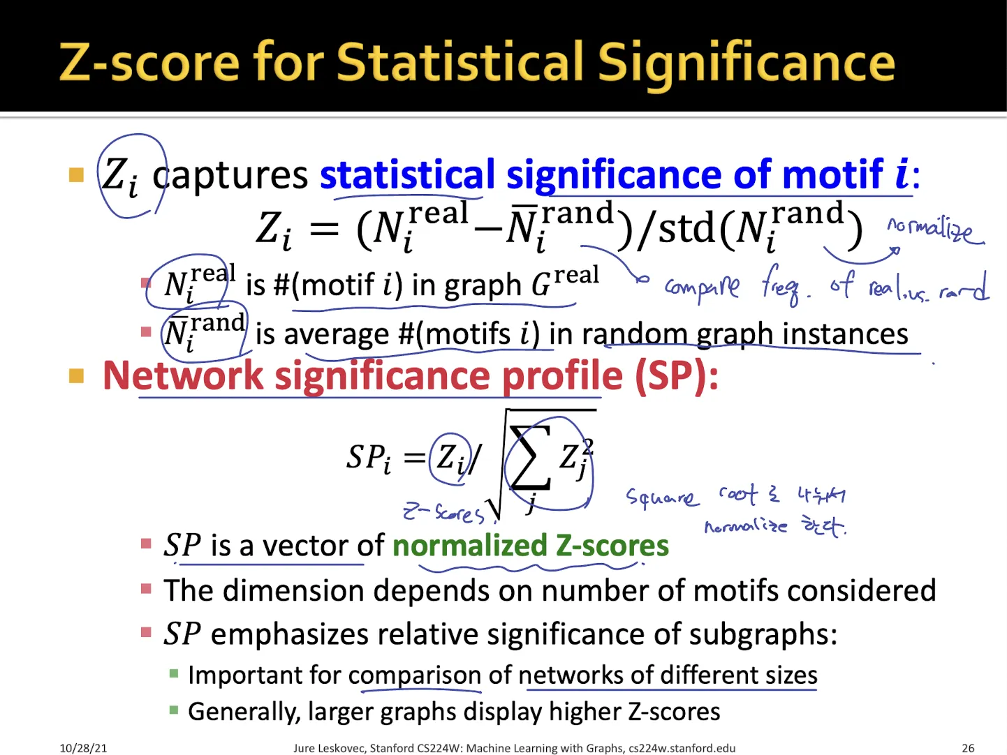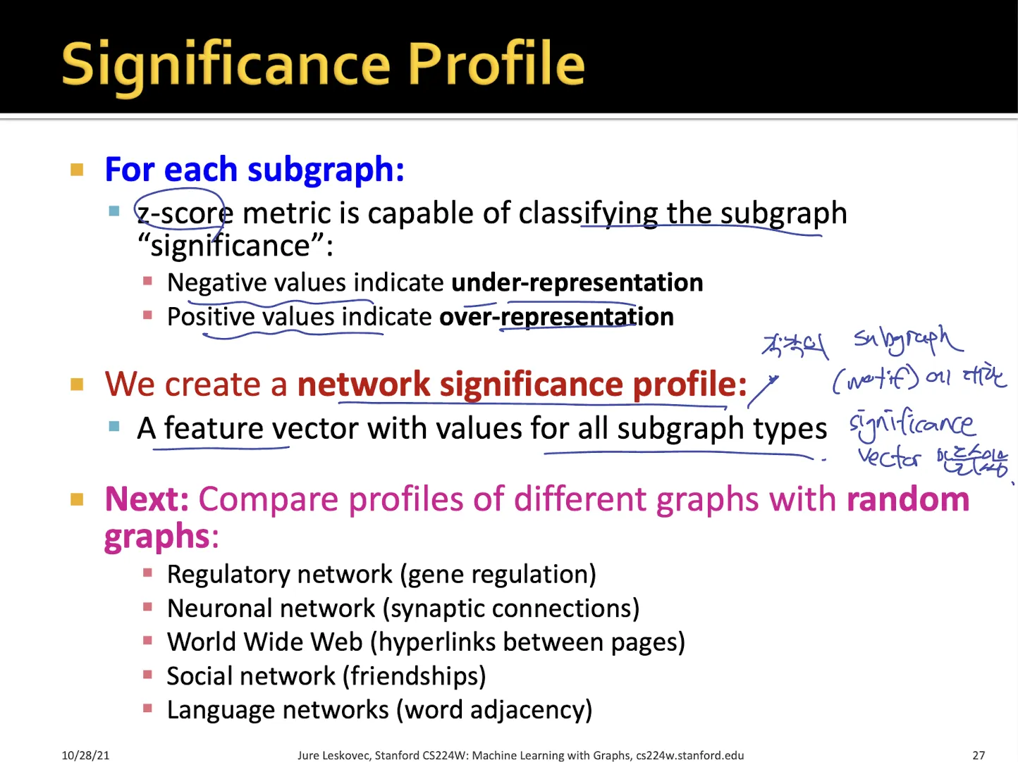 z-score를 통해 network significance profile 를 구할 수 있다.