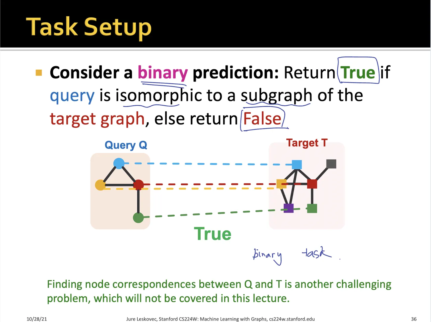 query graph가 target graph에 속하는지 binary prediction task로 생각할 수 있다.
