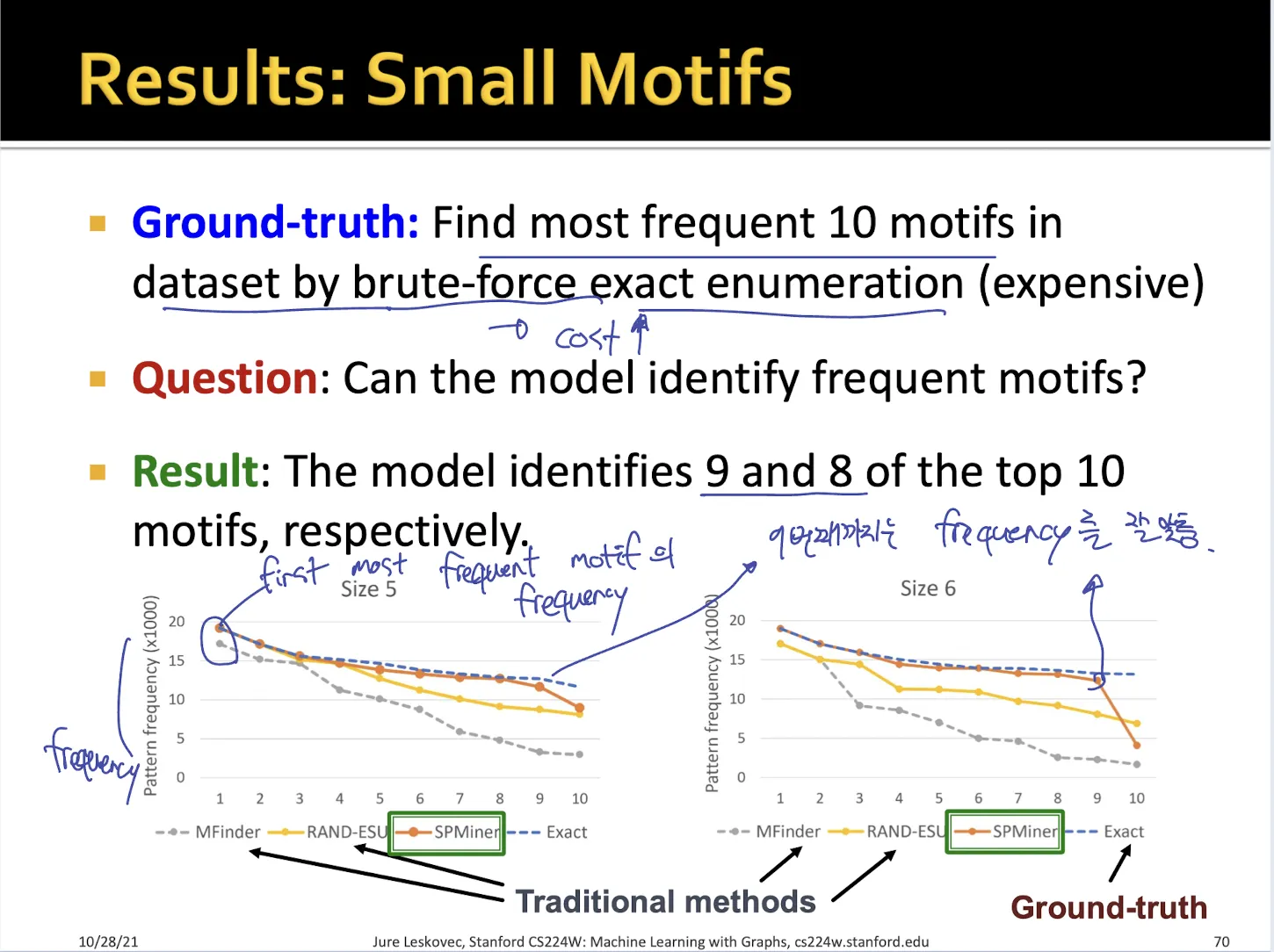 large motif의 경우 다른 traditional algorithm에 비해서 더 높은 frequency를 예측함