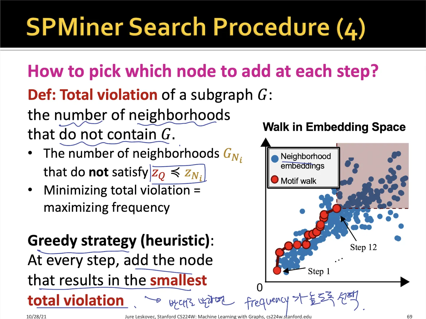 size가 커지는 매 step마다 total violation이 가장 작은 node를 추가하여 motif를 찾는다. (greedy algorithm)