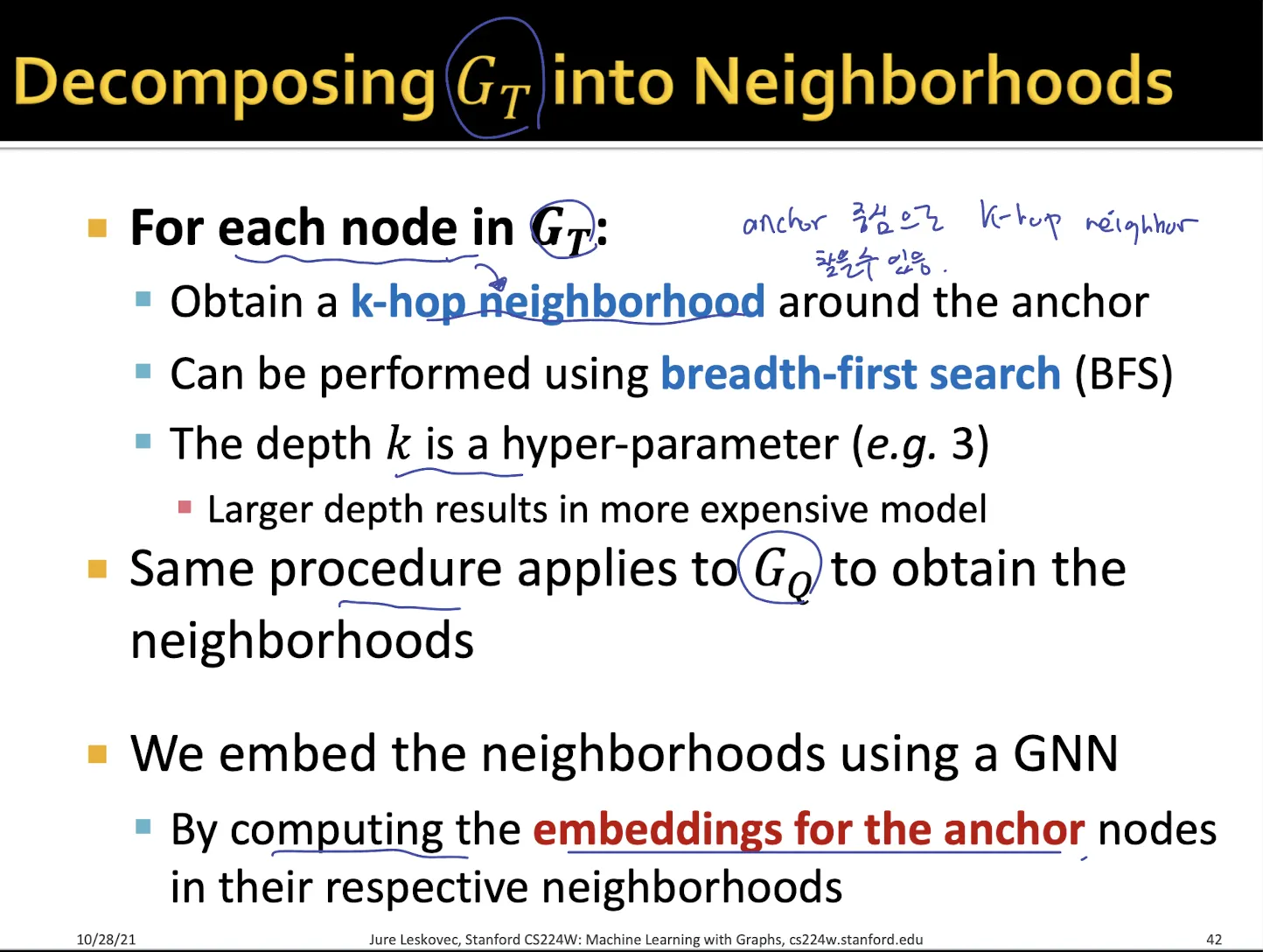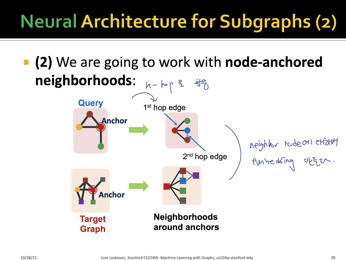 target graph 에서 각 anchor에 대해서 k-hop neighborhood embedding을 뽑아낸다.