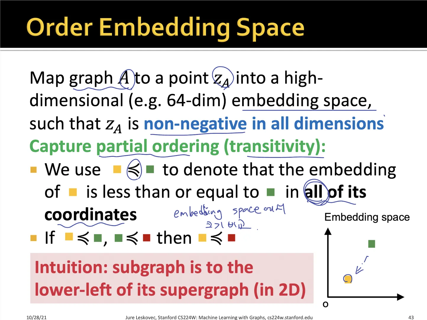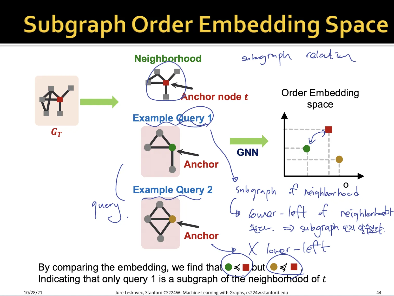 query graph의 node embedding에 대해서 target graph의 node embedding 보다 lower-left라면 subgraph라 말할 수 있도록 모델링