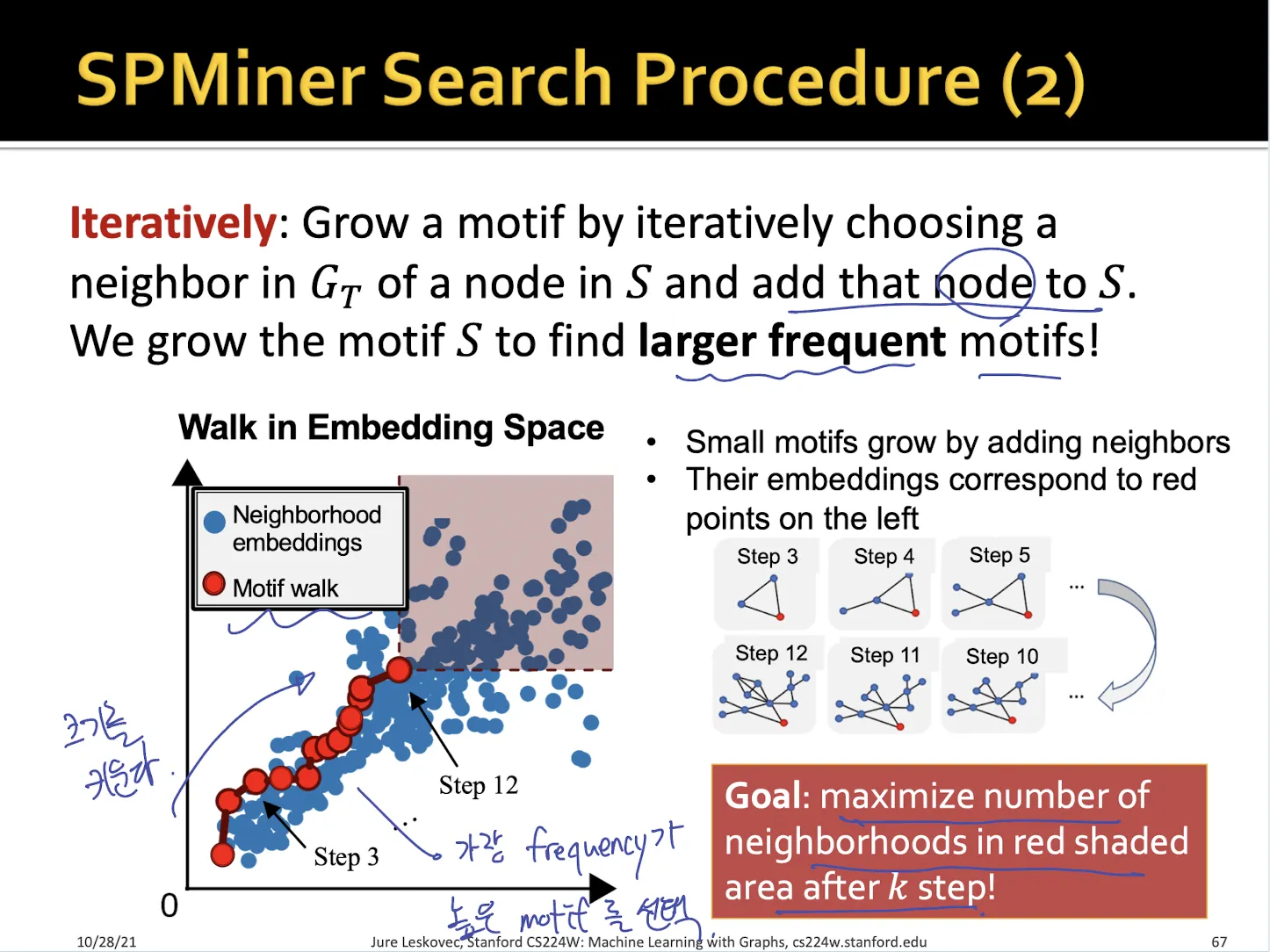 size 를 증가시키면서 shaded region을 최대로 하는 motif를 찾는다. → 매 step에서 node를 1개씩 추가