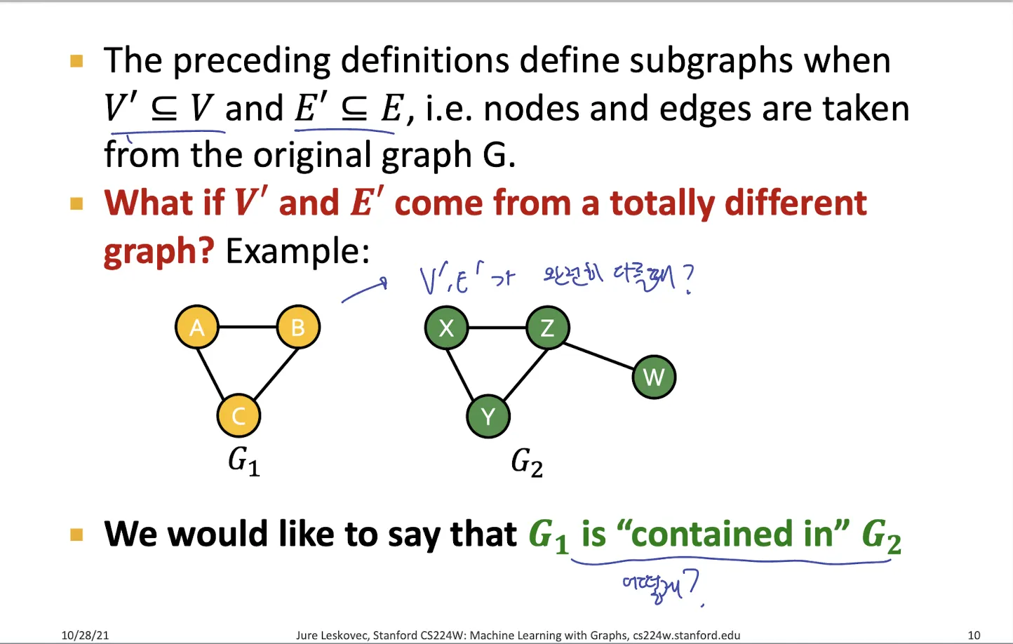 → 하지만 아래 그림과 같이 subgraph node와 targe graph node의 라벨이 완전히 다를 때 subgraph라 할 수 있는가? 어떻게 하는가?