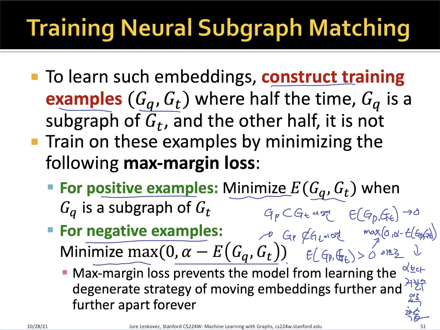 positive example - query graph와 target graph가 subgraph 관계라면 를 최소화