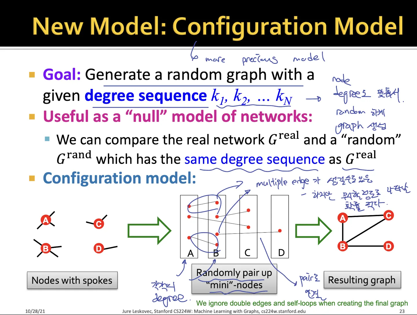 → 두 node를 연결하는 edge가 1개가 아니라 여러개인 multiple edge가 생길 수도 있지만 확률이 매우 낮아서 괜찮다고 함