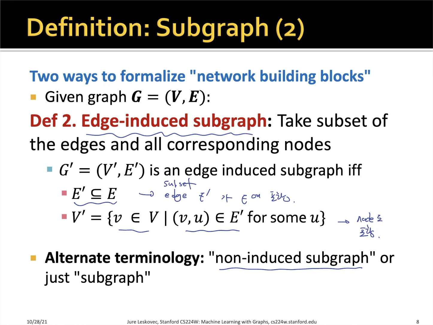 Edge-induced subgraph : subgraph edge가 target graph edge에 포함되고, node들도 다 포함되는 경우