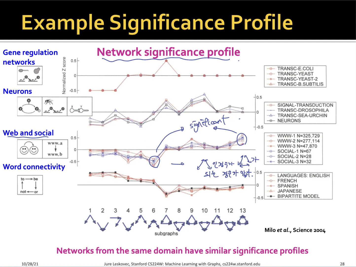 subgraph의 frequency, significance를 통해 각 graph의 unique characteristics를 구별