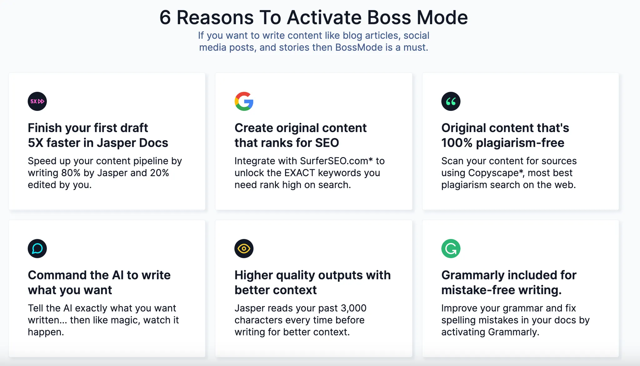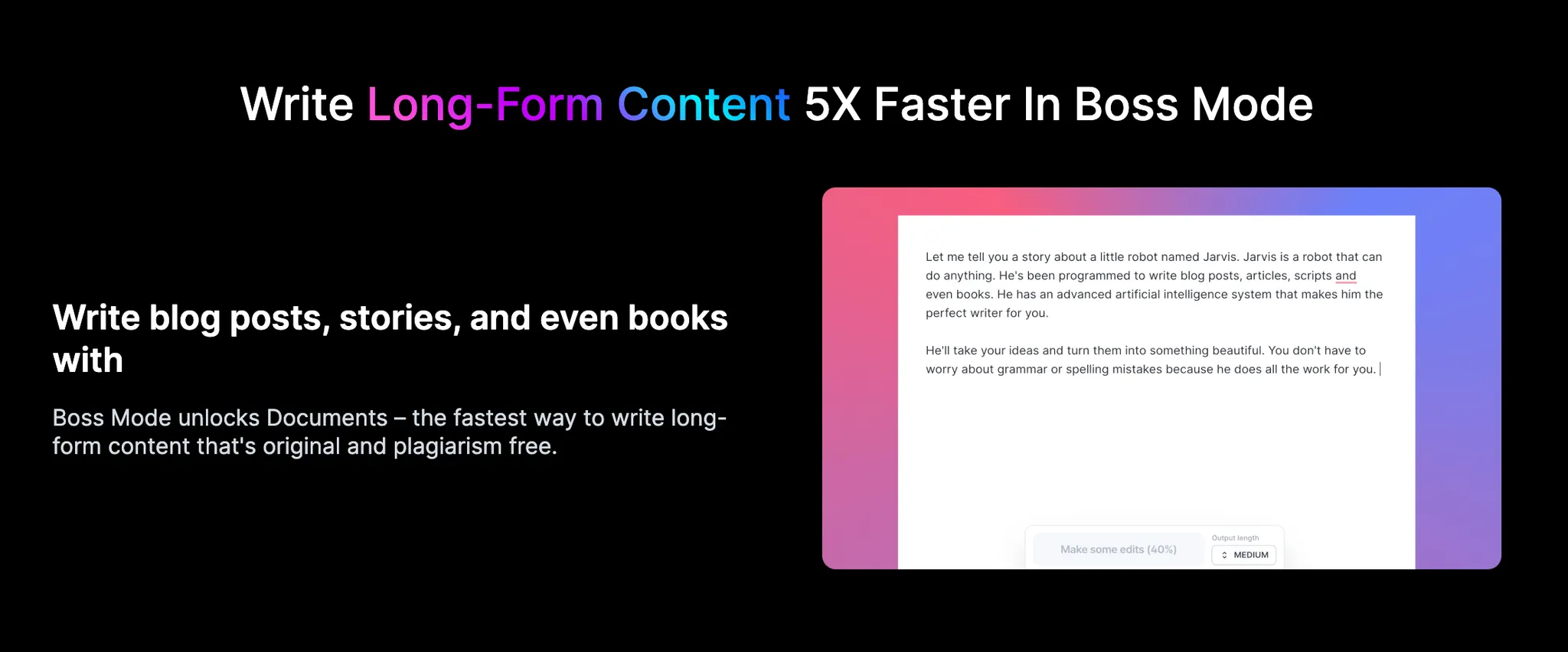 단순히 text generation를 진행하는 것이 아니라 plagiarism도 방지하고 구글 SEO를 최적화할 수 있는 글을 생성해준다.