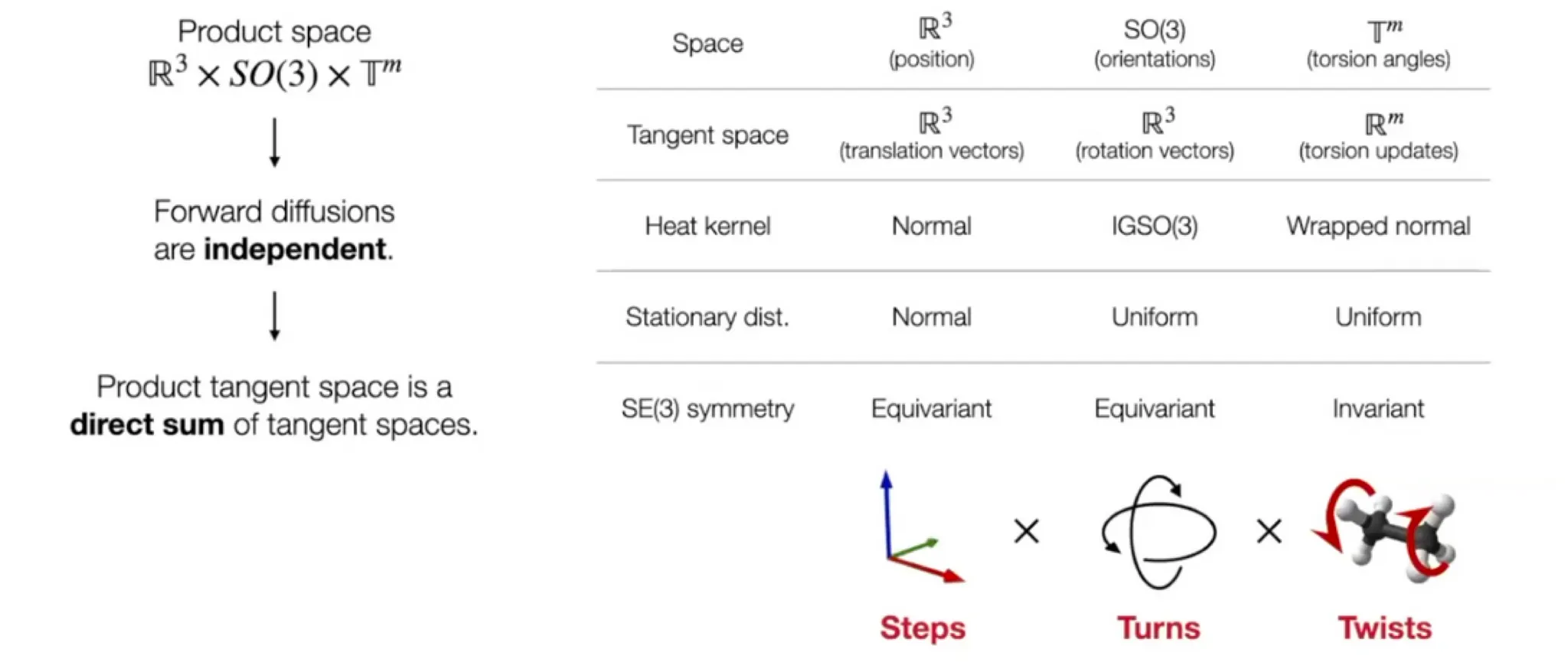 Score model: Translation (평행 이동), rotation (회전), torsion (비틀림)에 대해 reverse diffusion 수행