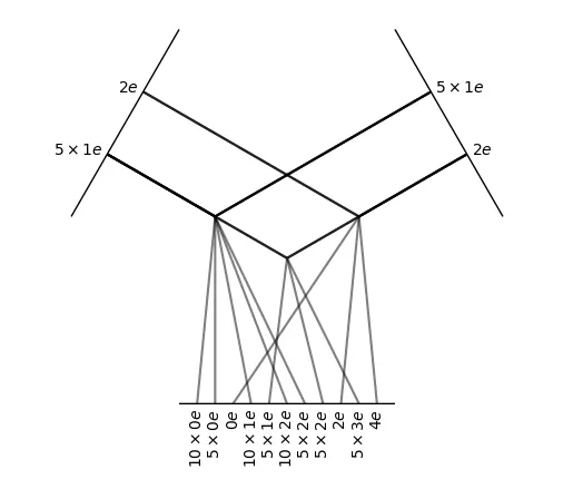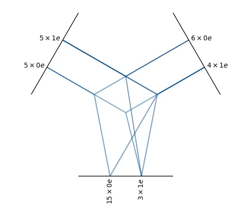 # example tp = o3.FullyConnectedTensorProduct( irreps_in1='5x0e + 5x1e', irreps_in2='6x0e + 4x1e', irreps_out='15x0e + 3x1e' ) tp.visualize();