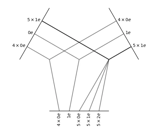 # example tp = o3.TensorSquare("5x1e + 2e") tp.visualize()