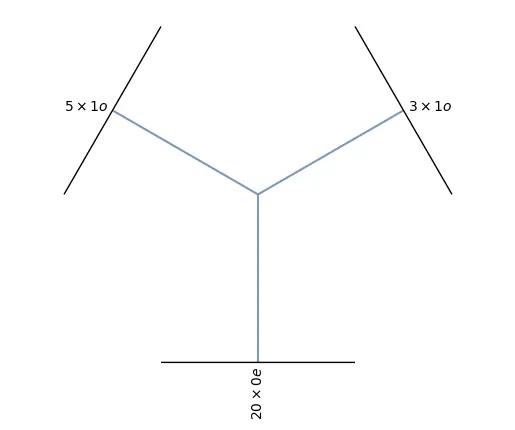 # example tp = o3.FullyConnectedTensorProduct( irreps_in1='5x1o', irreps_in2='3x1o', irreps_out='20x0e') tp.visualize()