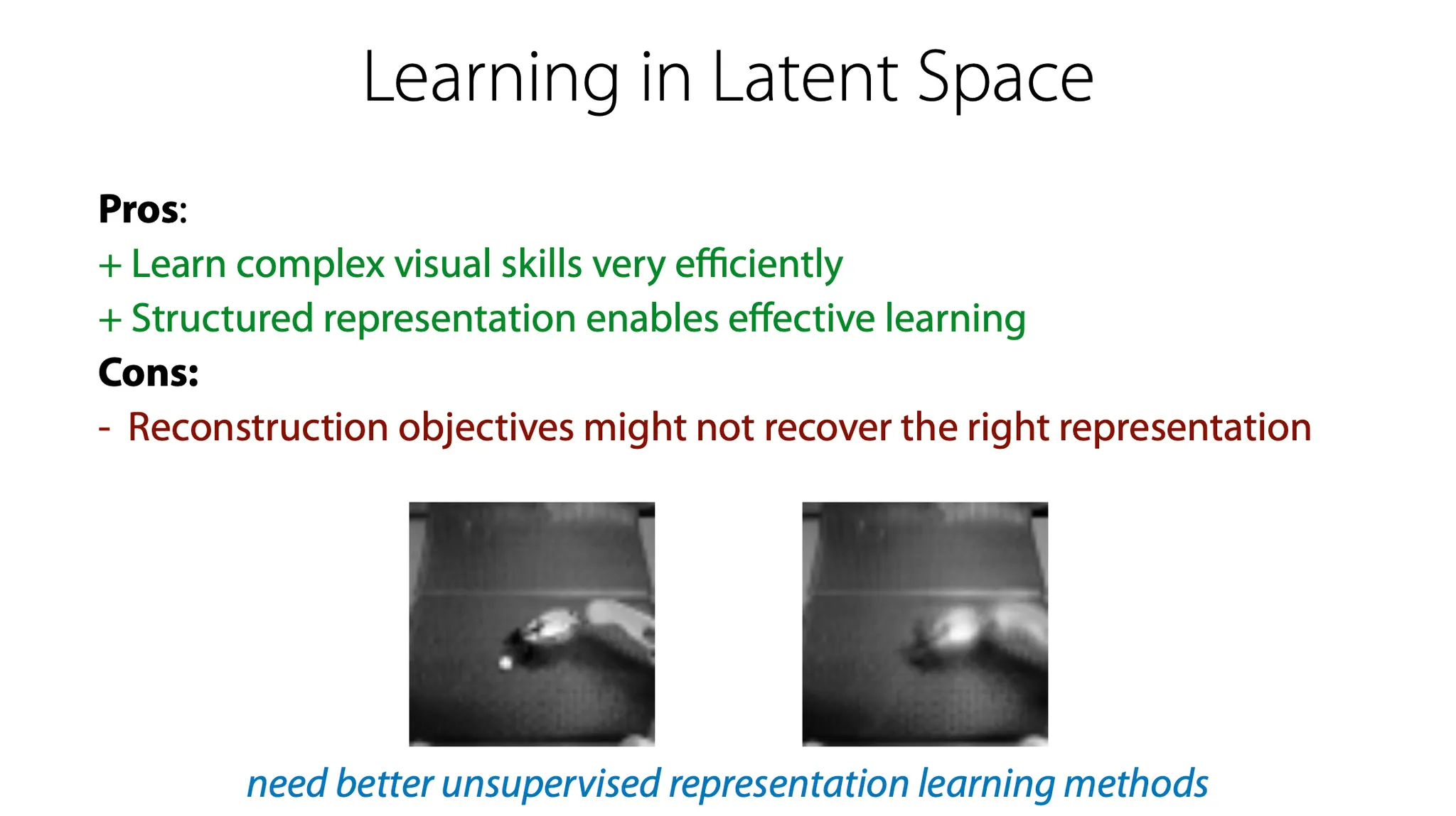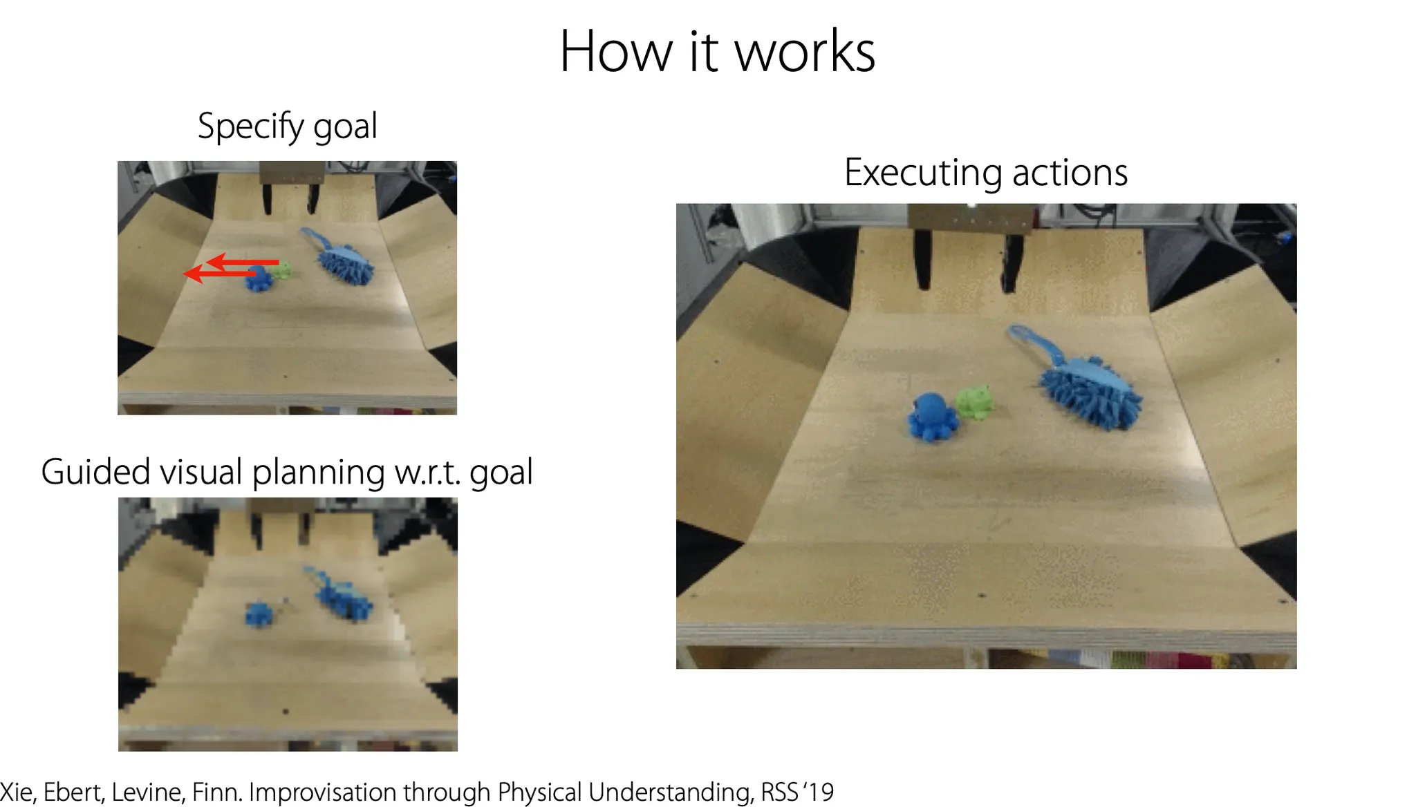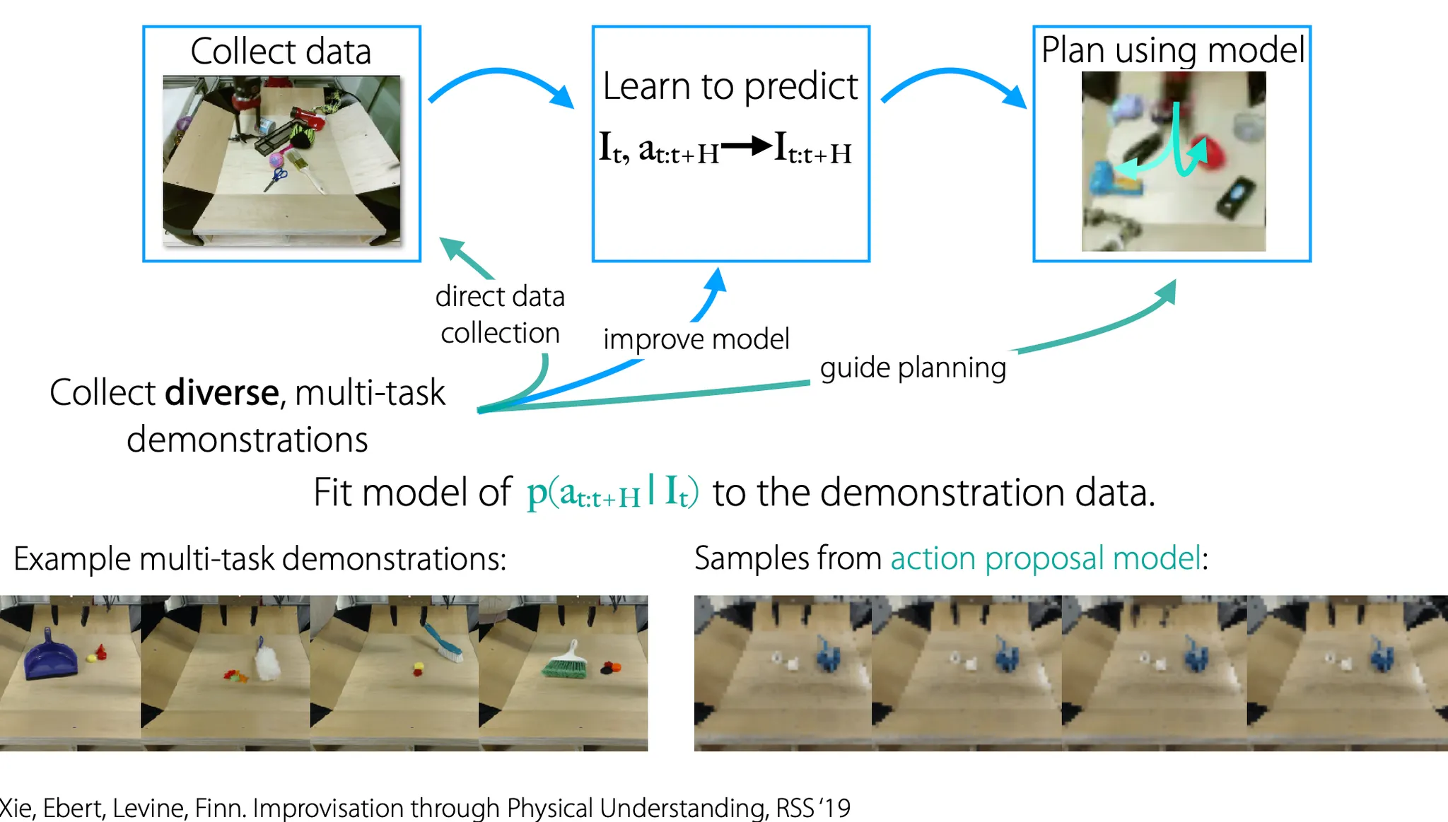 Task에 따라 dynamics를 학습하는 것과 policy를 학습하는 것 둘 중에 서로 적합한 경우가 다를 수 있다. 예를 들어, 물을 따라야 하는 task에 대해서는 물이 흐르는 dynamics를 학습하는 것보다 그냥 로봇팔로 물이 들어있는 물체를 기울이는 동작(policy)이 더 학습하기 쉬울 것이다. 이 경우는 model-free appraoch가 더 쉬울 수 있다. 반면에 특정 position으로 물체를 밀어넣으려고 한다면, 물체를 밀어넣는 dynamics는 꽤 간단해서 한 번 model을 이용해 dynamics를 학습해 놓으면 여러 task에 대해서 적용할 수 있을 것이다.