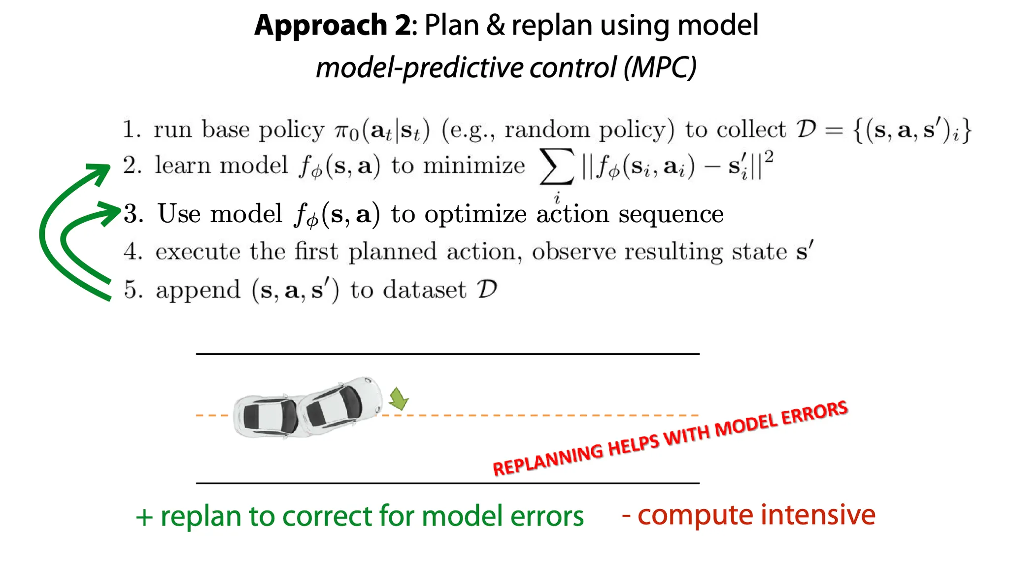 두 번째 방법으로는 model-predictive control(MPC)라고 부르는 방법으로, model이 잘못 학습되기 전에 보정을 해줄 수 있는 방법이다.