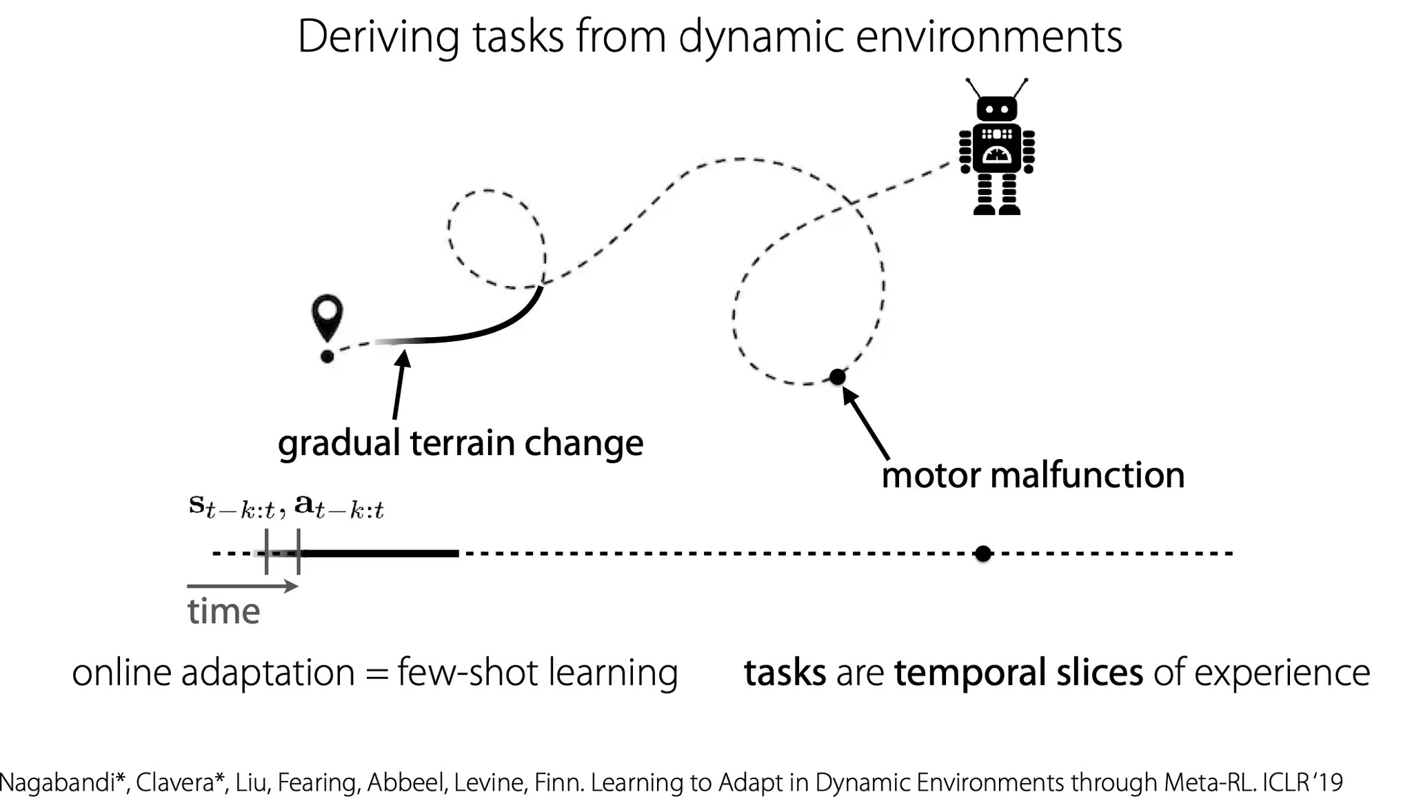 즉, terrain change나 motor malfunction 같은 dynamics에 변화가 있는 상황에서, 각 time step마다 주어진 data를 사용해 adaptation을 하는 것이라고 볼 수 있다.