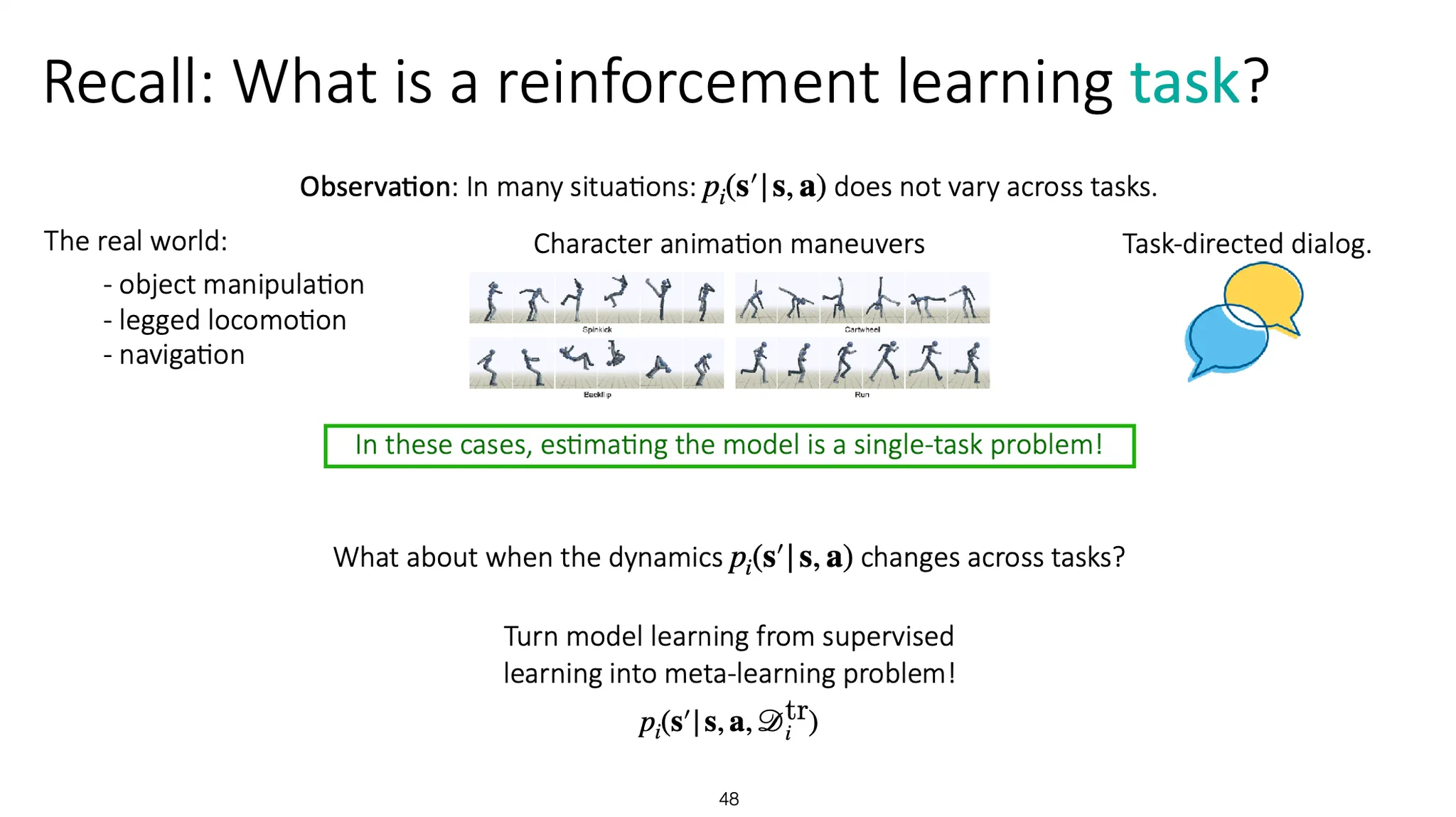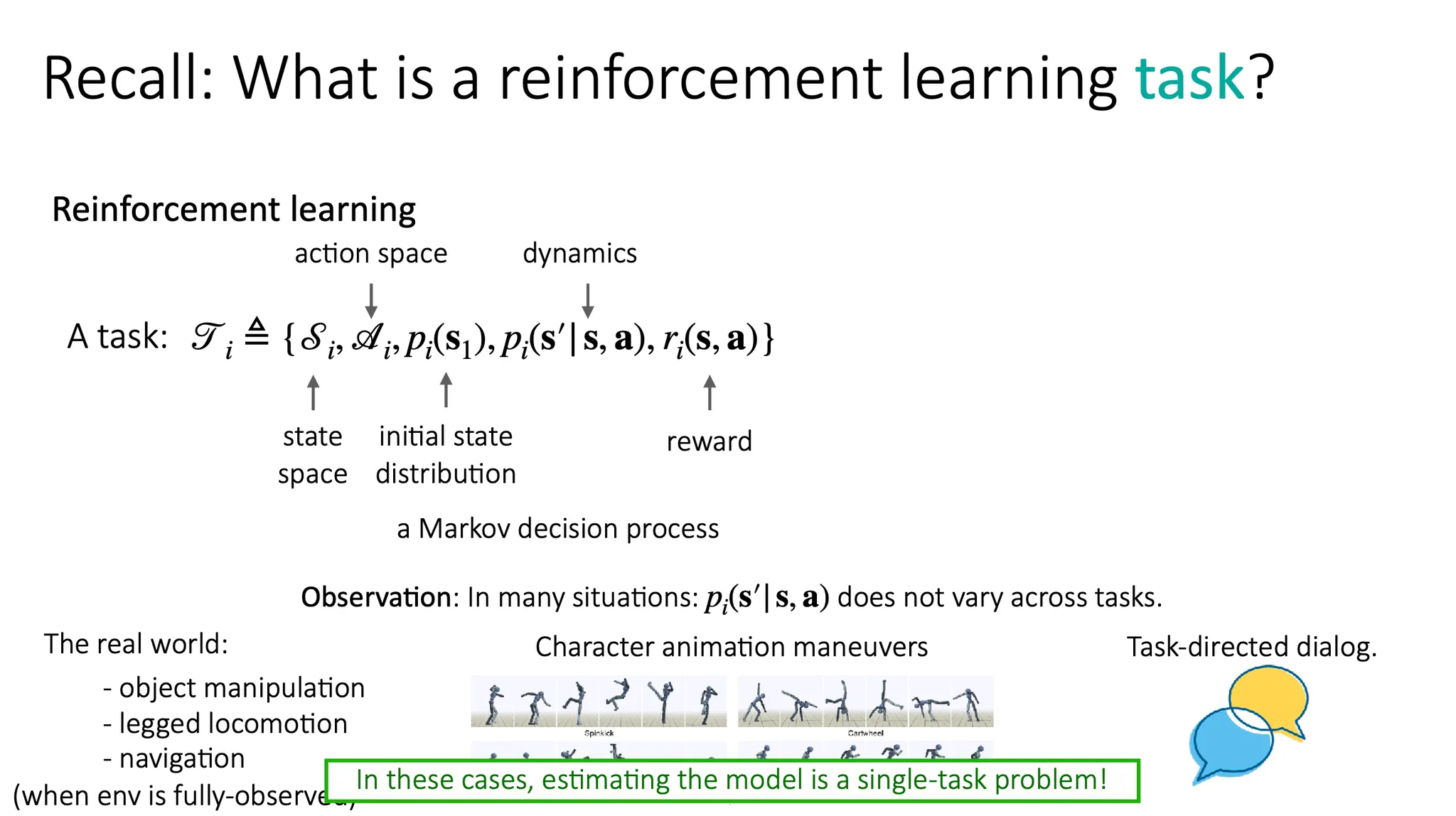 많은 RL task들의 경우 dynamics 는 task가 바뀌어도 달라지지 않는다. 이 경우에 model을 학습하는 것은 single-task problem이라고 할 수 있다.