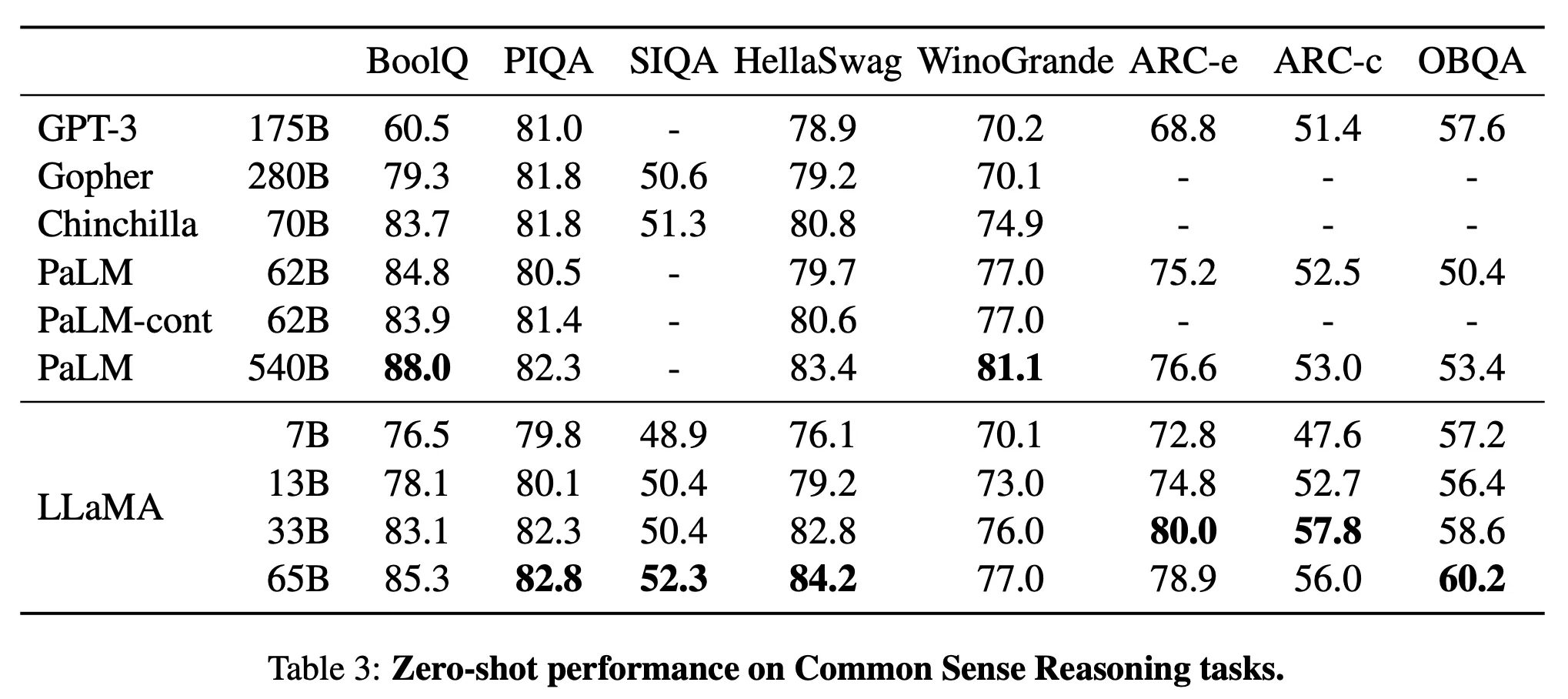 LLaMA(65B) : DeepMind의 Chinchilla(70B)과 Google Research의 PaLM(540B)와 같은 LLM 만큼 경쟁력이 있음